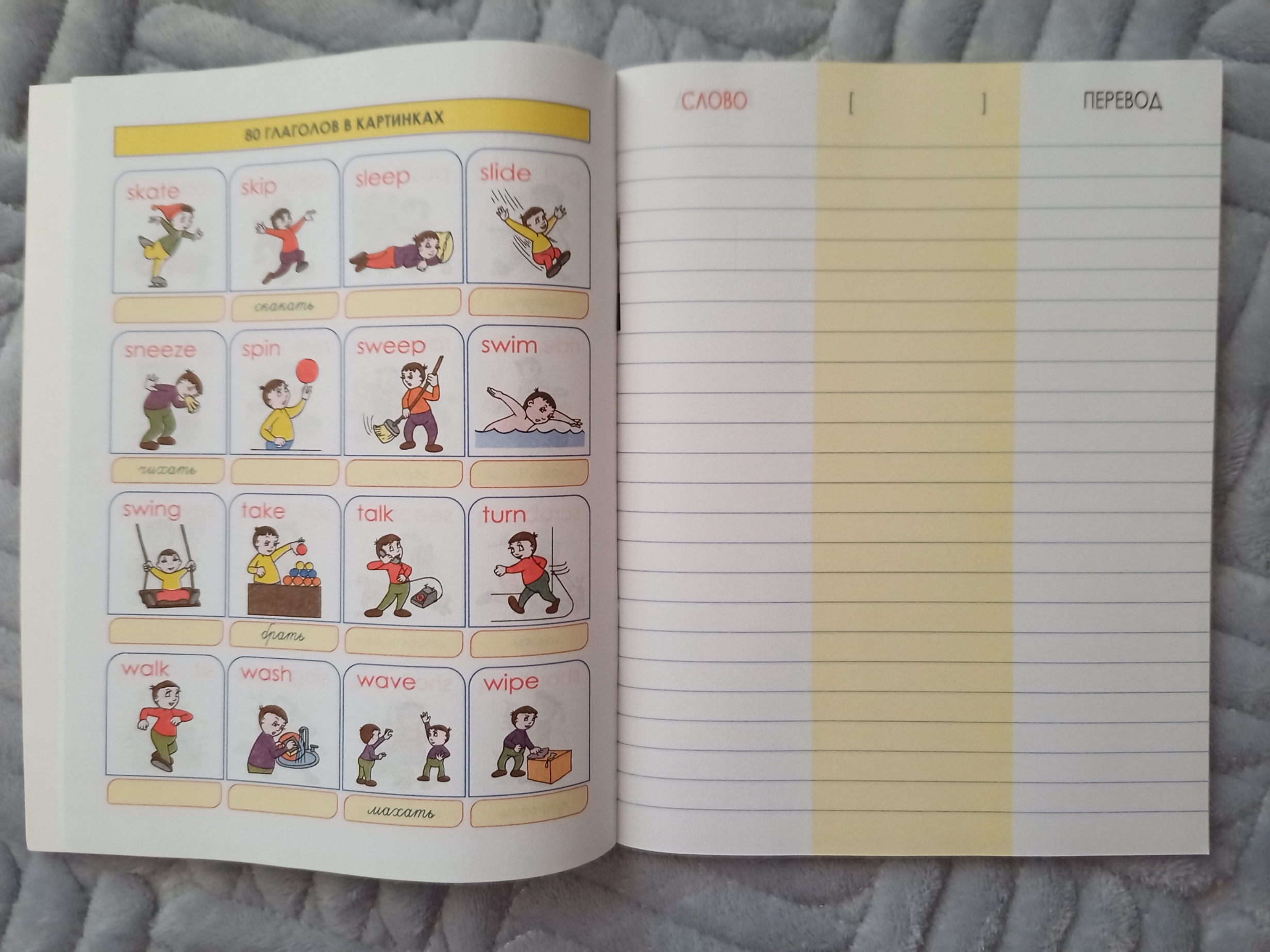 Тетрадь-словарь для записи слов со вспомогательными материалами.
