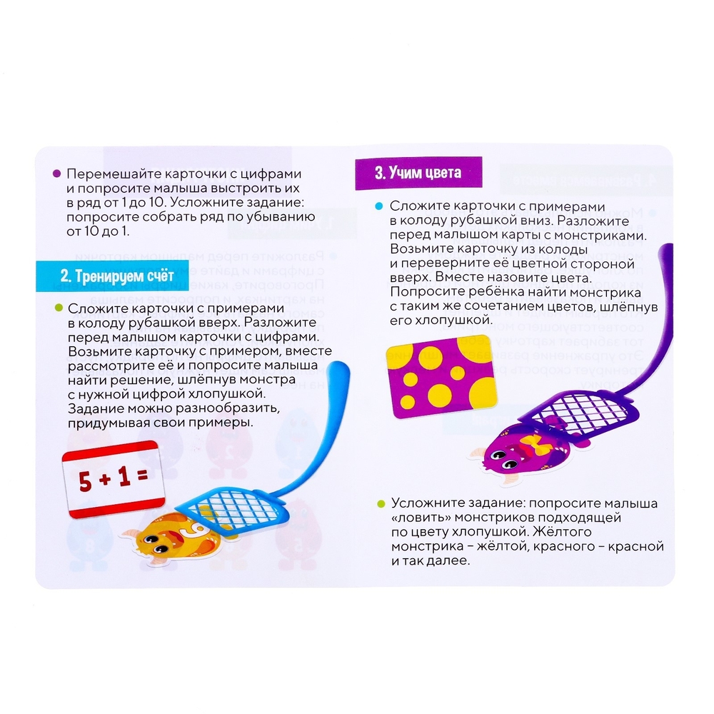 В комплект входят 4 хлопушки, 10 карточек-монстриков и 10 карточек-заданий.