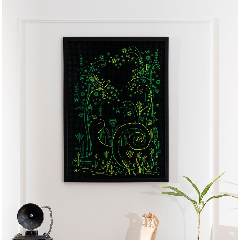 Вам не нужно дополнительно ничего приобретать, в составе набора предусмотрена черная канва, без нанесённого рисунка 14 каунта, нитки мулине в 3 оттенках, на плашках, качественная игла, обеспечивающая легкость и точность шитья, а также цветная символьная схема, которую поймет даже ребенок.