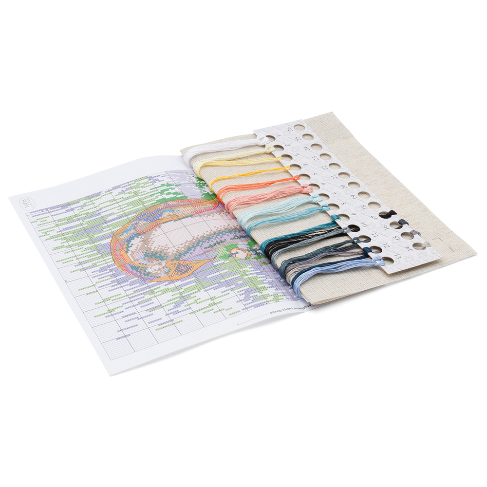 Набор включает в себя все необходимое для начинающих и опытных мастериц: канва 15 каунта лен (без нанесенного рисунка), хлопковое мулине Luca-S (17 цветов), цветная символьная схема, игла, инструкция на русском языке, эл.схема Saga.