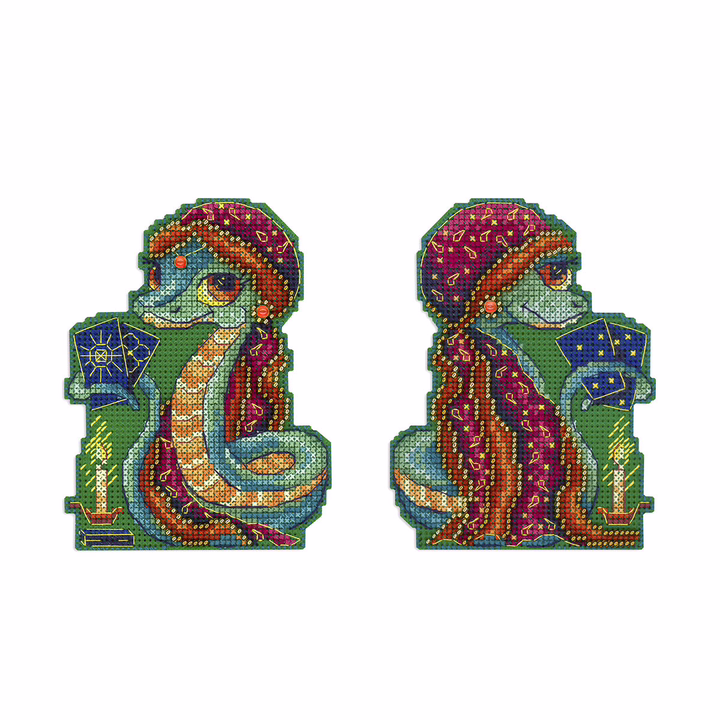 Набор для вышивания на пластиковой канве "Змейка" представляет собой уникальную возможность создать красивую и оригинальную вышивку с минимальными усилиями. Пластиковая канва прекрасно держит форму, поэтому пяльцы и рамки не нужны. Нужно вырезать детали по контуру и сшить их аккуратными стежками. При желании можно добавить между элементами ленту для подвешивания.