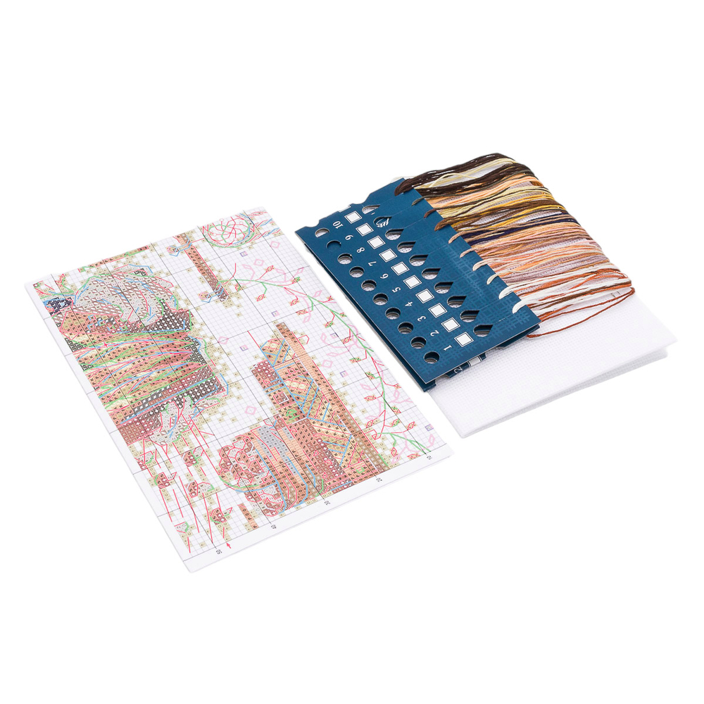Вам не нужно дополнительно ничего приобретать, в составе набора предусмотрена канва Aida 16 ct белая, хлопковое мулине в 29 оттенках, качественная игла, обеспечивающая легкость и точность шитья, инструкция, а также цветная символьная схема, которую поймет даже ребенок, эл.схема Saga.