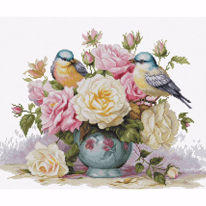 Набор для вышивания крестом "Ваза с розами и птицами" – это магическое произведение, которое может перенести вас в сказочный мир, где каждый узелок и стежок рассказывает свою историю. Готовое изделие станет милым подарком для всех, кто увлекается вышиванием.