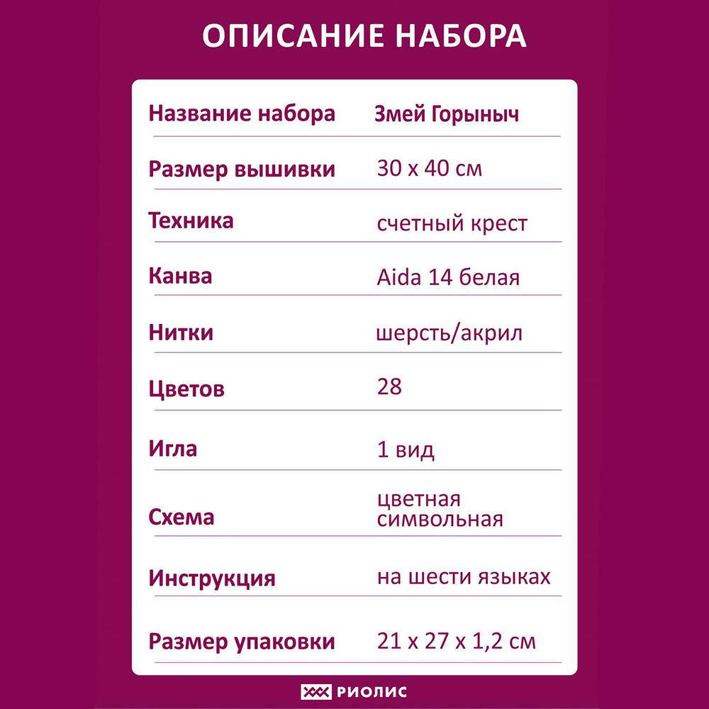 Набор для вышивания счетным крестом "Змей Горыныч" – это превосходный выбор для тех, кто ценит творчество, рукоделие и хобби. Отлично подходит как для начинающих, так и для опытных вышивальщиц. Вышивка картины своими руками – увлекательное занятие и прекрасный способ расслабиться и отдохнуть.