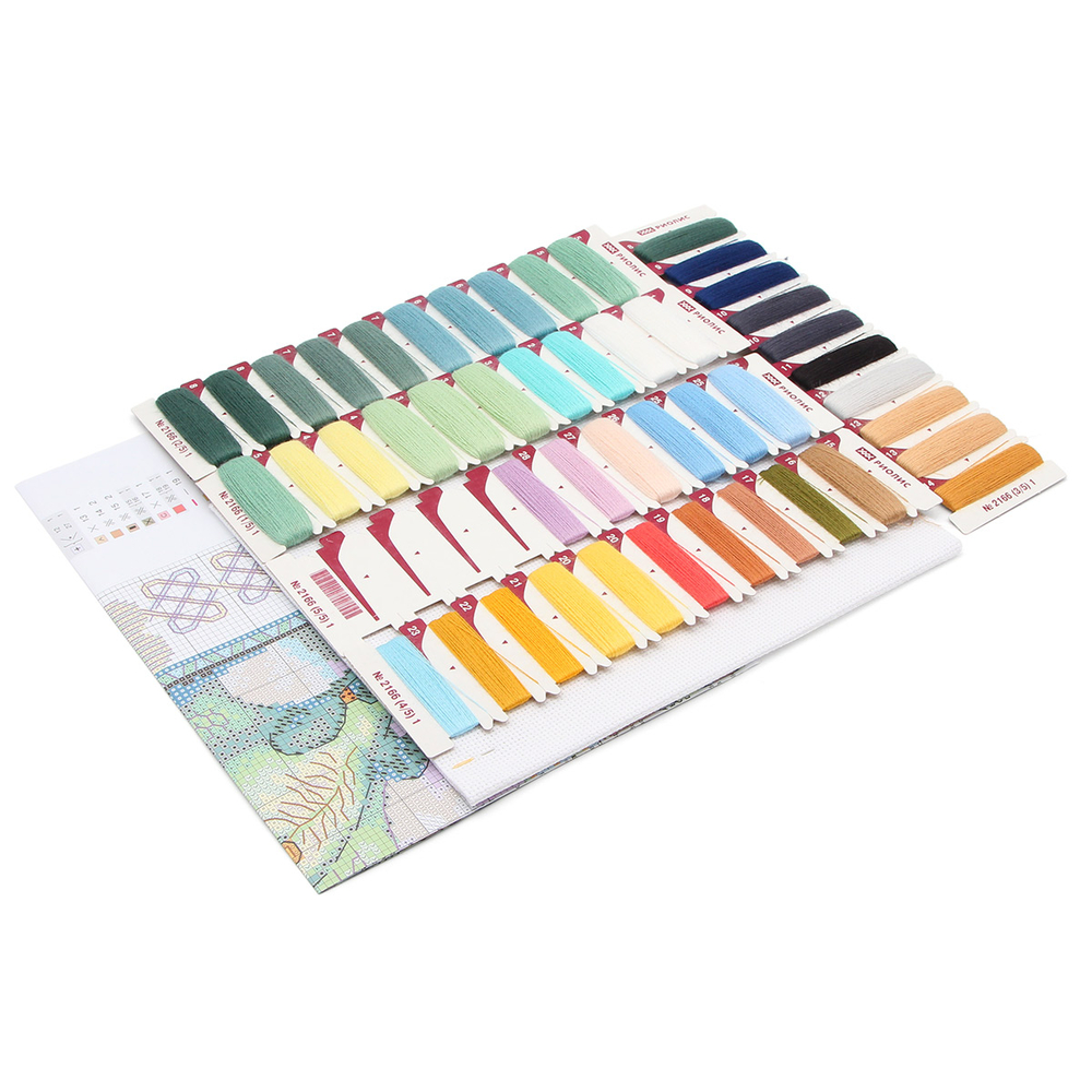 В этом наборе вышивка крестиком есть все необходимое для создания красивой картины: канва Aida 14 ct, нитки для вышивания мулине, игла, цветная схема и инструкция.
