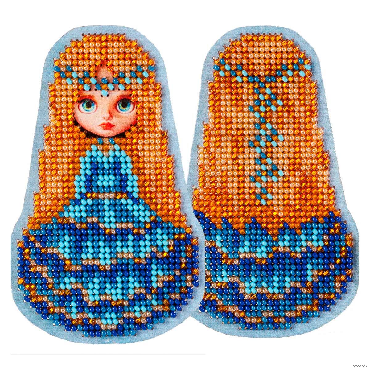 В наборе: пластиковая основа для вышивания с нанесенным рисунком и схемой (2 шт.), бисер, игла, инструкция и схема.