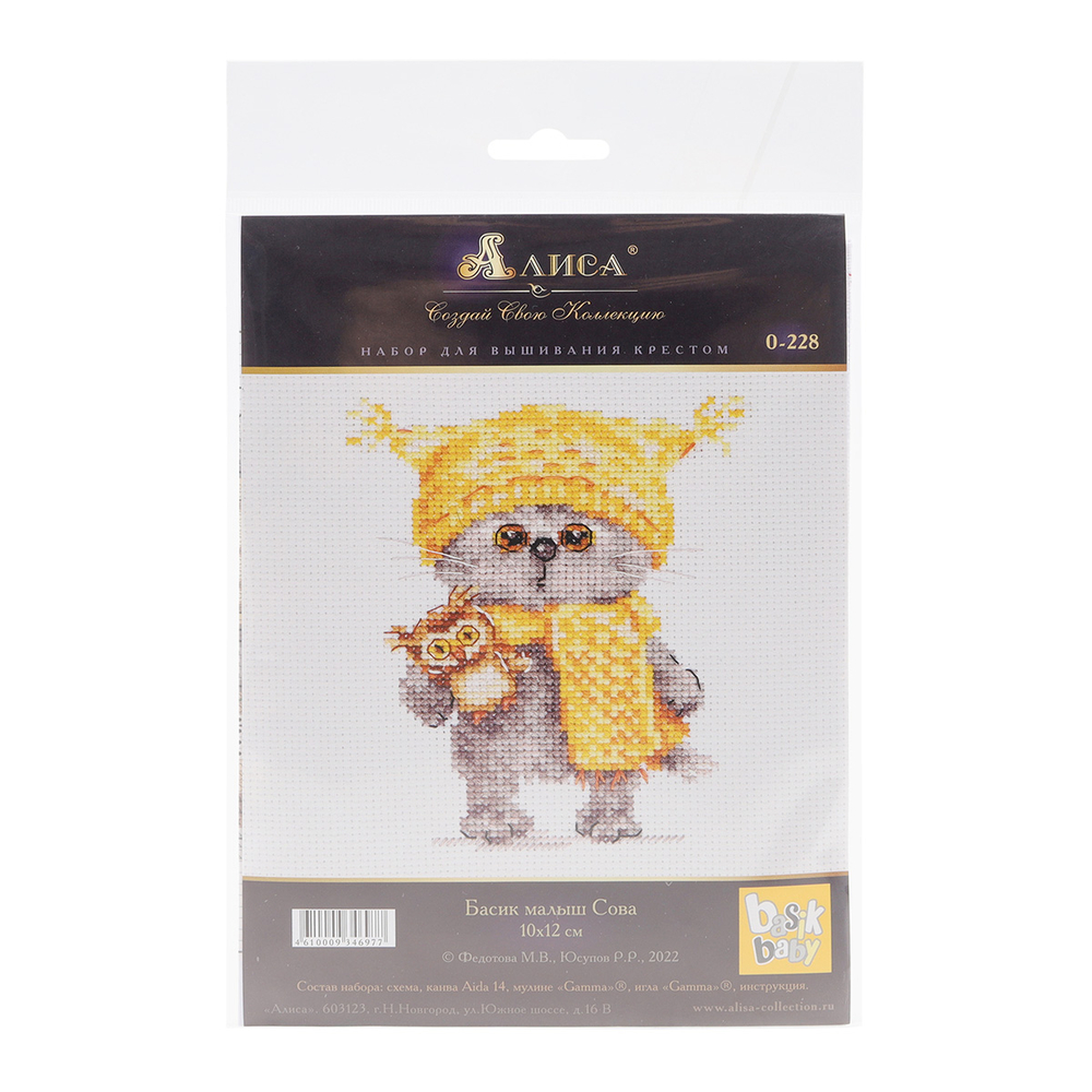 В наборе для вышивки крестом "Басик малыш Сова" используется классическая сетчатая канва Aida 14 каунта, которая подходит как для простых схем, так и для картин с подробной детализацией.