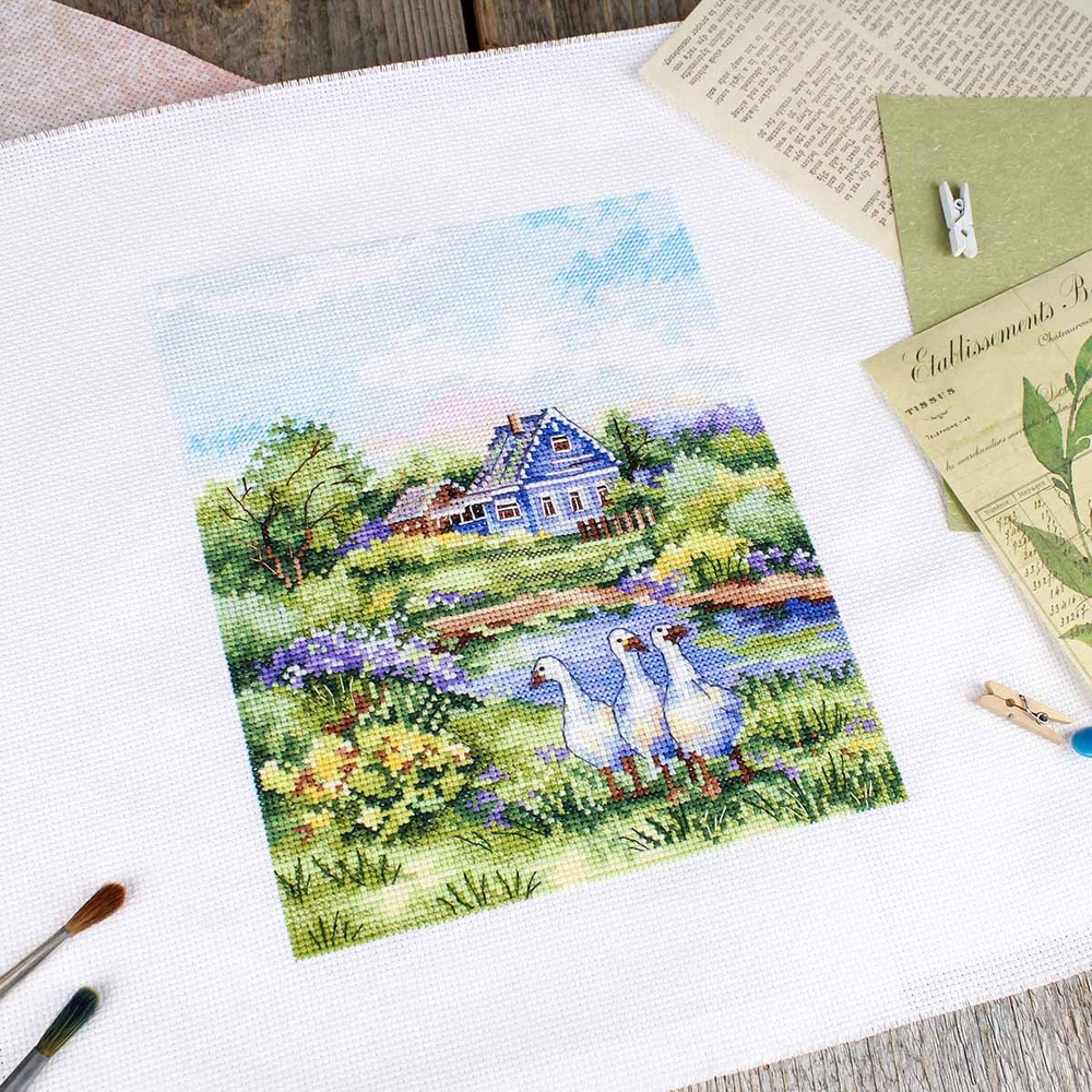 Вышивка с изображением уютного деревенского домика, во дворе которого пасутся гуси, передает атмосферу летнего уюта и подчеркивает идиллию сельской жизни. Каждый шаг вышивания будет наполнен радостью и вдохновением, а готовая работа станет ярким акцентом в вашем интерьере или замечательным подарком для близких.
