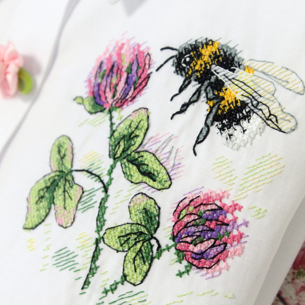 В работе используется водорастворимая канва, которую по окончании легко удалить – просто погрузите вещь с вышивкой в теплую воду.