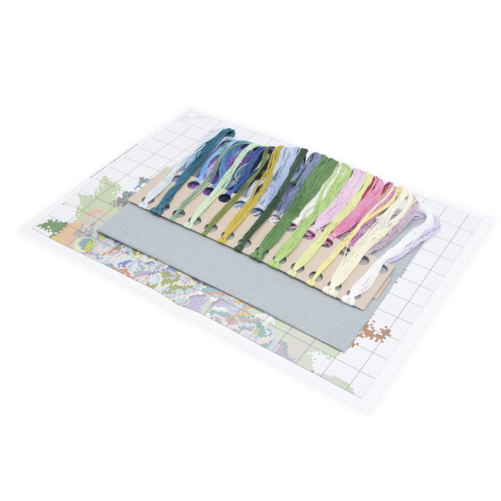 В наборе для вышивки крестом 'Бесконечное лето' используется канва Aida 16 каунта – этот материал позволяет вышивать небольшими стежками и прекрасно подходит для схем с подробной детализацией.