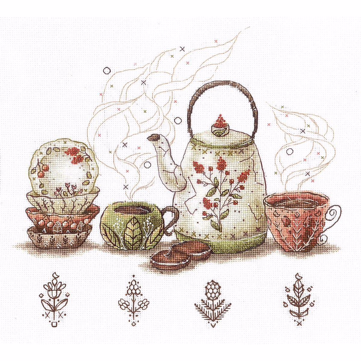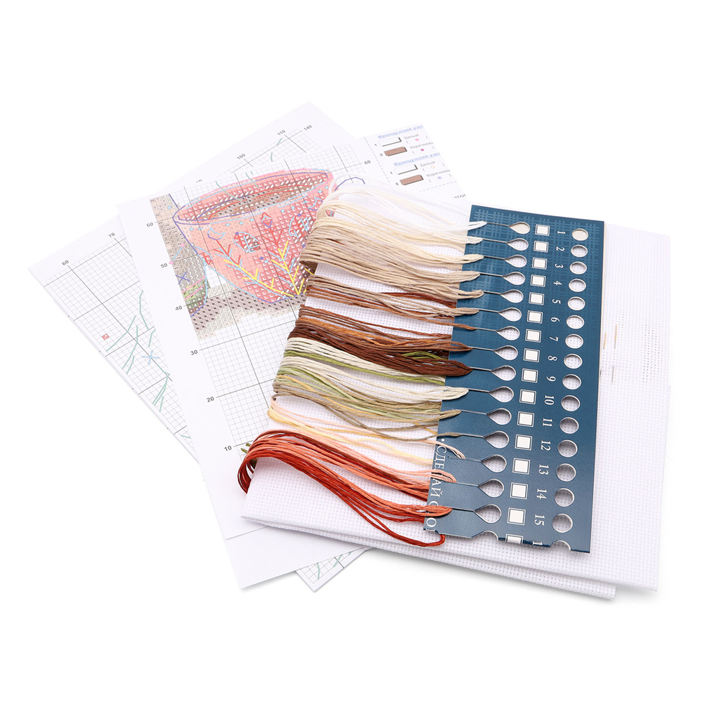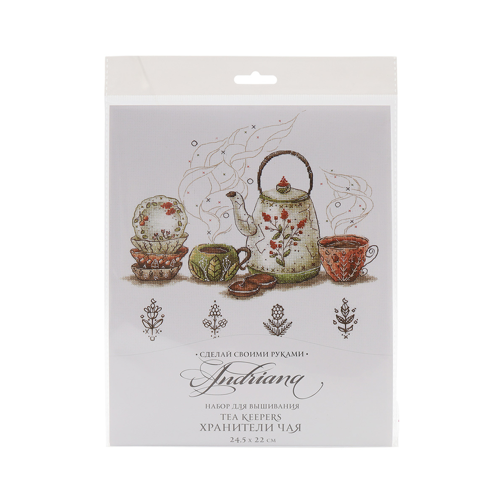 В наборе для вышивки крестом "Хранители чая" используется канва Aida 16 каунта. Она позволяет вышивать небольшими стежками и прекрасно подходит для схем с подробной детализацией.