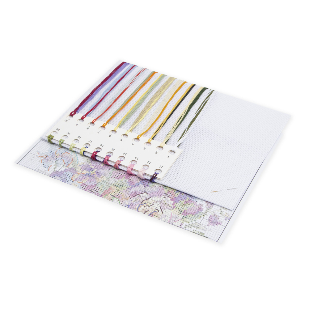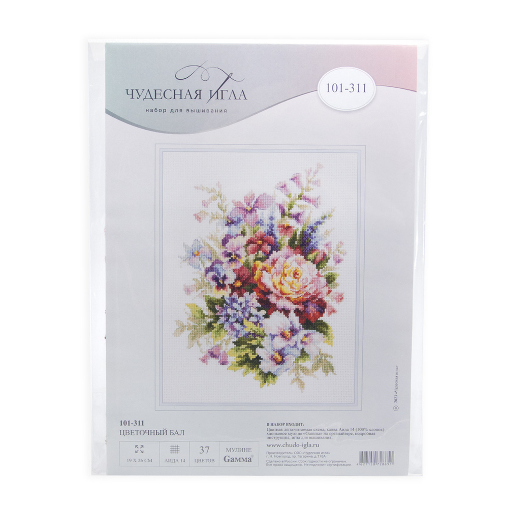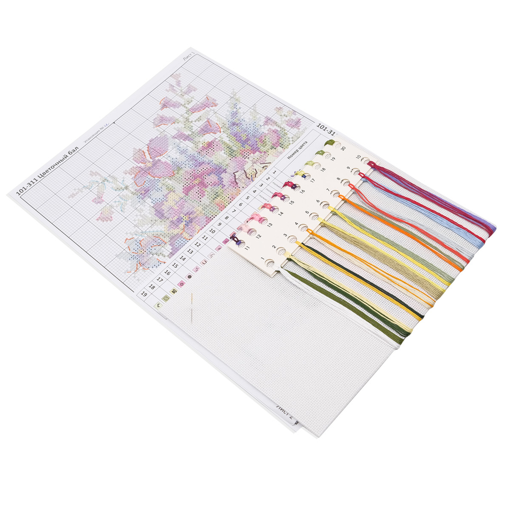 Набор для вышивки крестом "Цветочный бал" укомплектован канвой Aida 14 каунта. Она прекрасно подходит для схем с подробной детализацией, но при этом позволяет выкладывать достаточно крупные стежки. При работе с такой канвой, скорее всего, не потребуется увеличительное стекло.