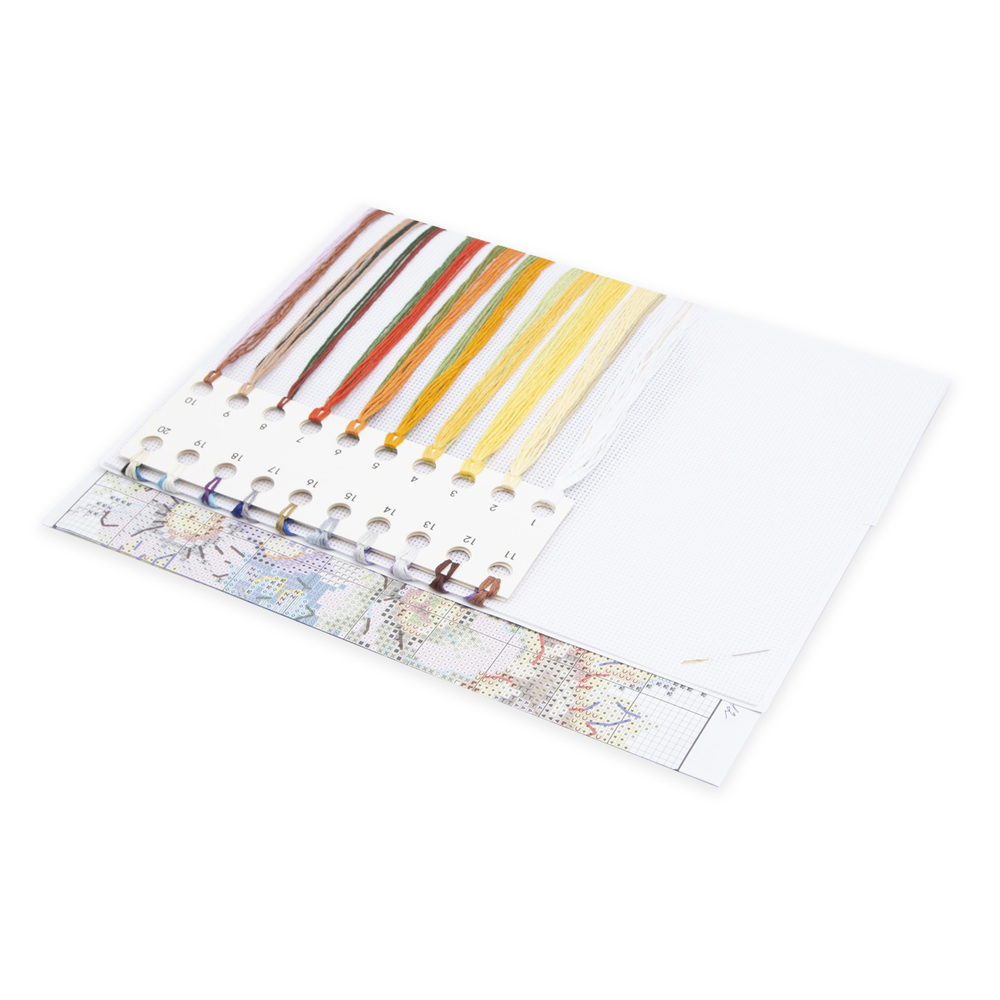 Набор для вышивки крестом "Солнечный поцелуй" укомплектован канвой Aida 14 каунта. Она прекрасно подходит для схем с подробной детализацией, но при этом позволяет выкладывать достаточно крупные стежки. При работе с такой канвой, скорее всего, не потребуется увеличительное стекло.