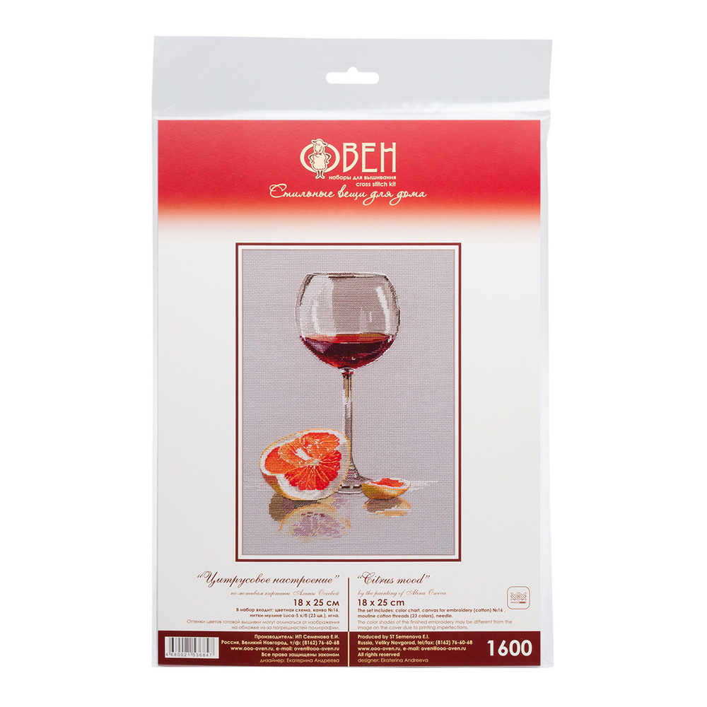 Для сюжета "Цитрусовое настроение" производитель ОВЕН выбрал серую канву Aida 16 каунта. Это плотная основа, на которой легко вышивать крестиком различные узоры и детали. Стежки на такой вышивке едва различимы, если смотреть издалека.