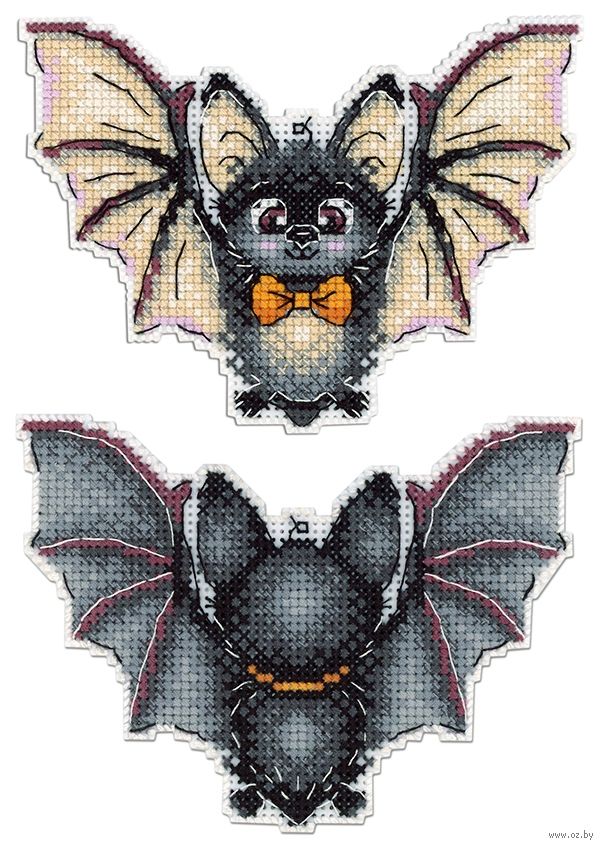 Обе стороны вышиваются согласно схеме, затем вырезаются по контуру, обозначенному в руководстве по вышиванию, и сшиваются изнаночными сторонами внутрь.