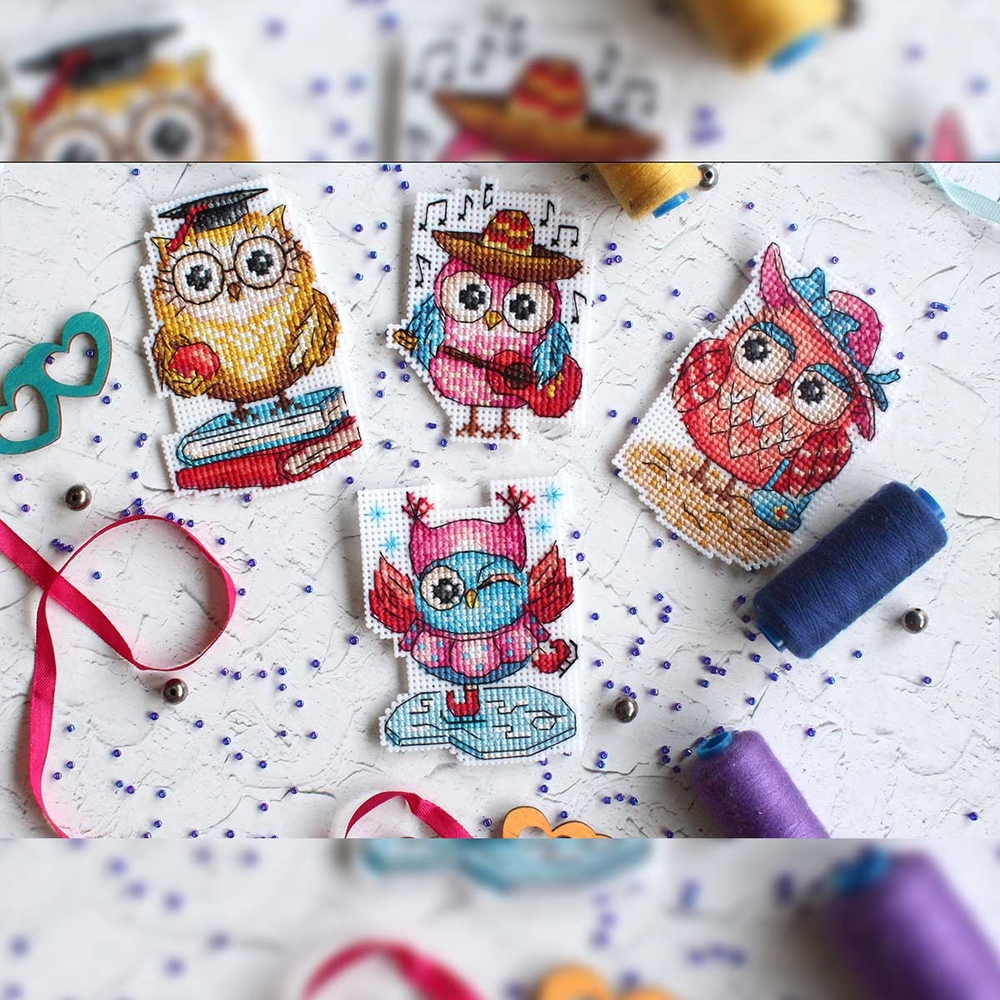 Вышитые магниты "Совиные истории" на холодильник – это яркие оригинальные сувениры и превосходный подарок. Чтобы сделать такой сувенир, достаточно владеть техникой "крест".
