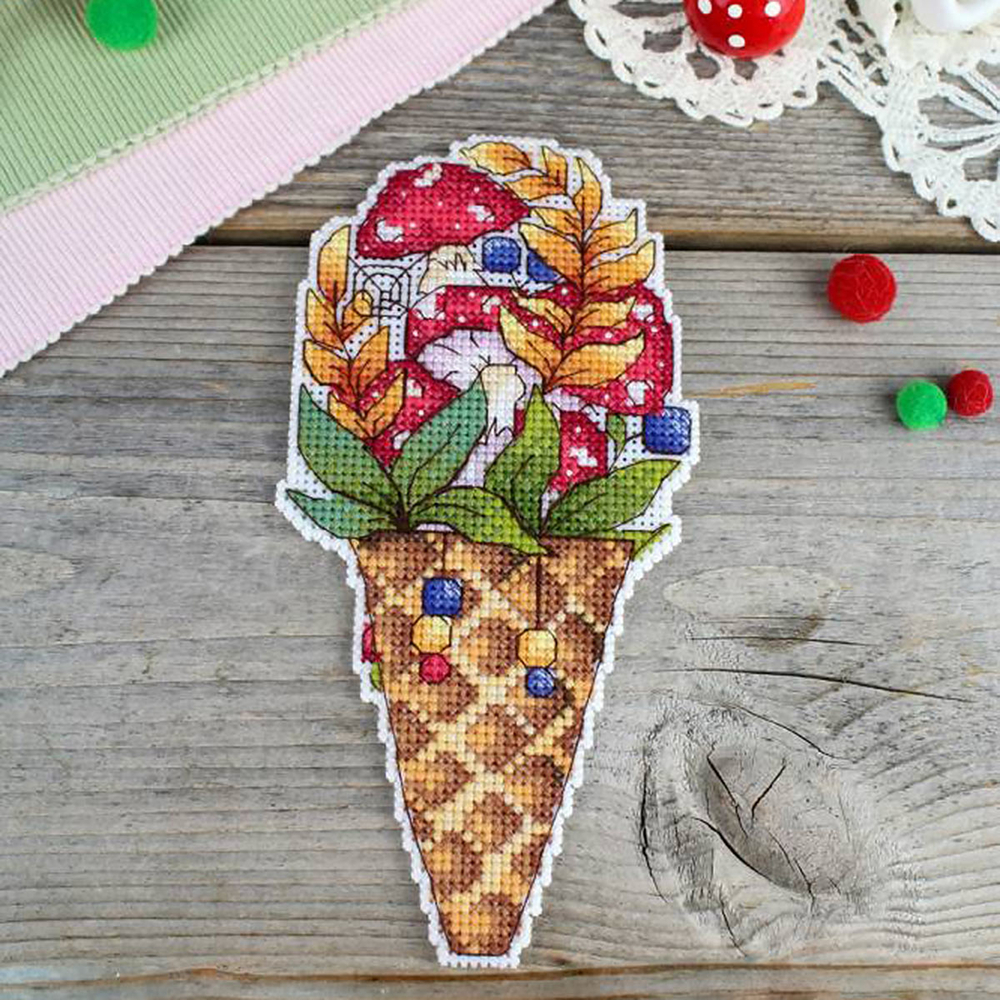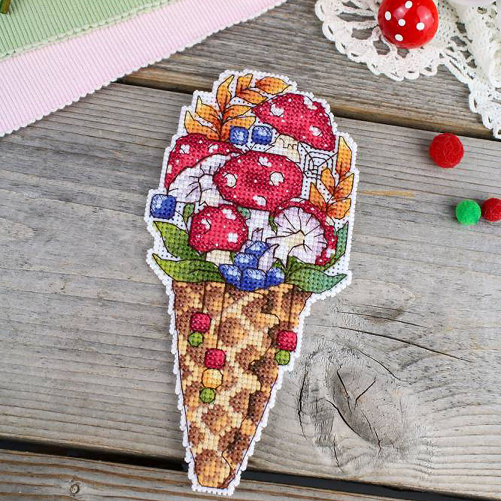 Полученная вышивка крестом представляет собой готовый сувенир в виде вышитого вафельного рожка с осенними грибами и не требует дополнительного оформления в багет или рамку. Основа из пластика не нуждается в специальной обработке. Вышивка крестиком украсит ваш дом к праздничным мероприятиям или станет отличным подарком близким людям.