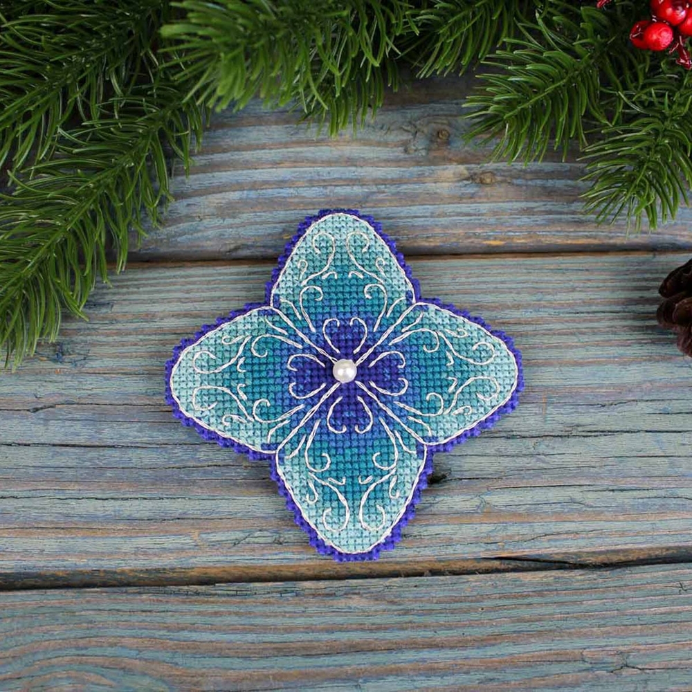 Набор от МП Студия вышивка новогоднего сувенира "Морозный цветок" включает в себя все необходимые материалы для создания неповторимого полотна, подробная инструкция позволит легко разобраться с тонкостями вышивки даже начинающим.