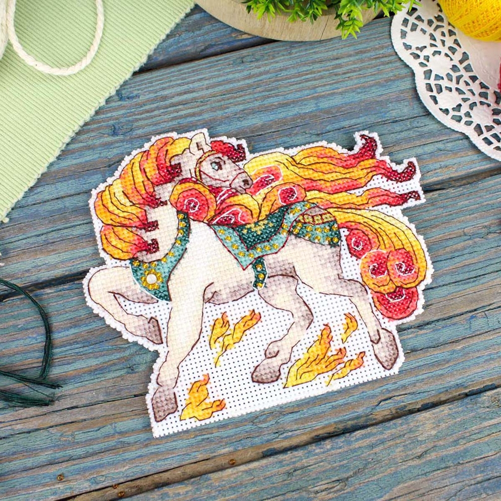 Набор от МП Студия вышивка яркого сувенира "Пламенный конь" включает в себя все необходимые материалы для создания неповторимого полотна, подробная инструкция позволит легко разобраться с тонкостями вышивки даже начинающим.