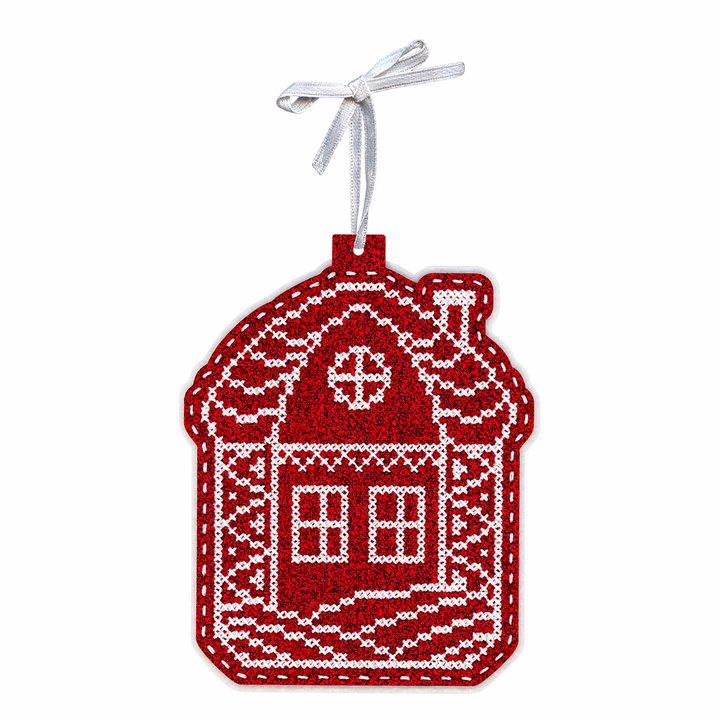 Благодаря перфорации, нанесённой на плотный фетр, стежки получаются ровными и одинаковыми по наклону. Эта новогодняя игрушка украсит ваш дом и станет уютным элементом интерьера.