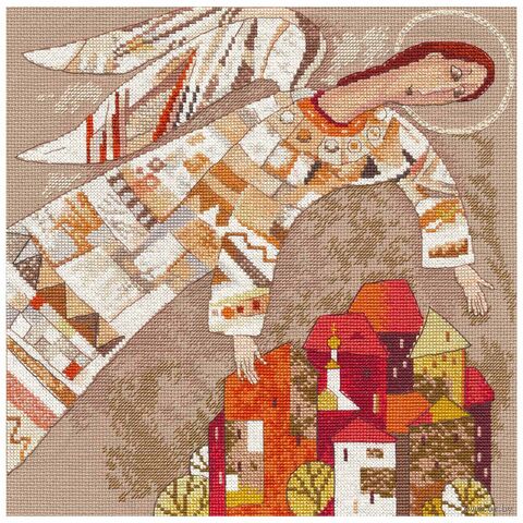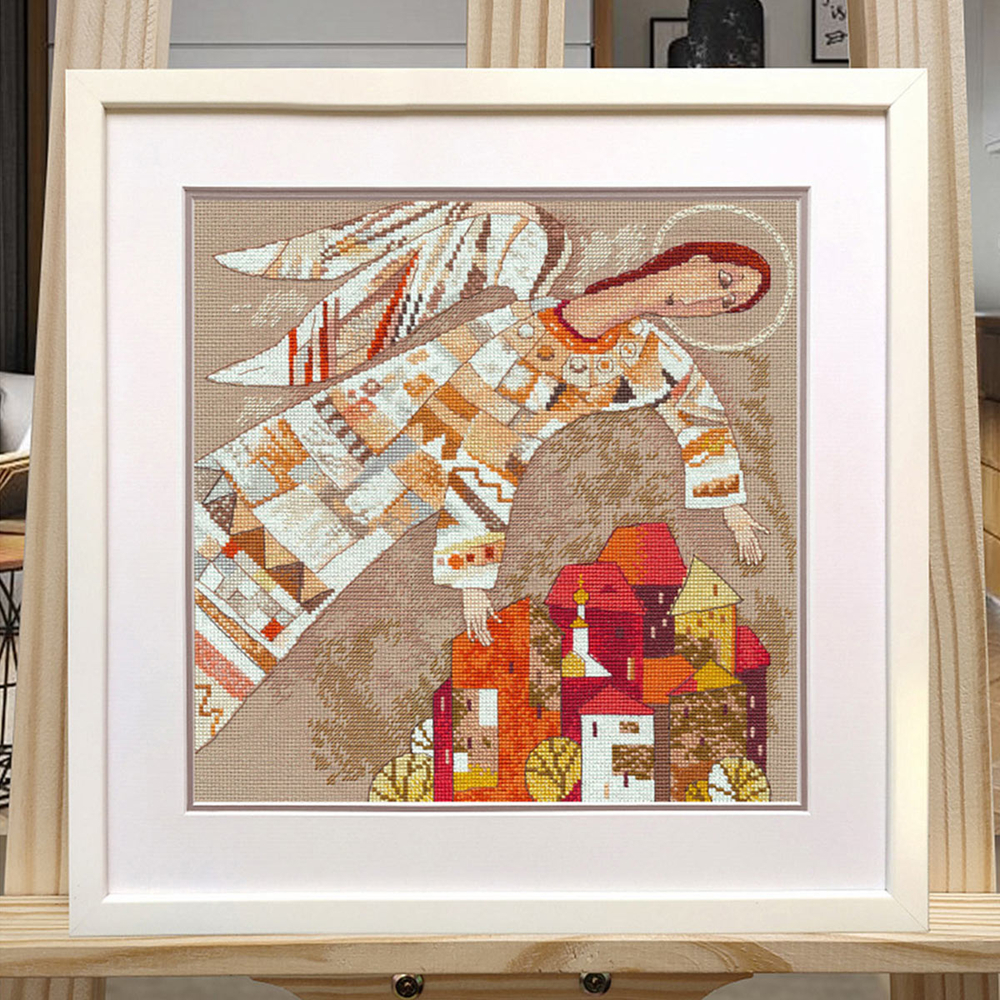 Вышивка станет символом защиты и надежды, наполняя пространство теплом и верой в добро. Ангел-хранитель словно окутывает город мягким светом и защитой, создавая атмосферу покоя и безопасности.