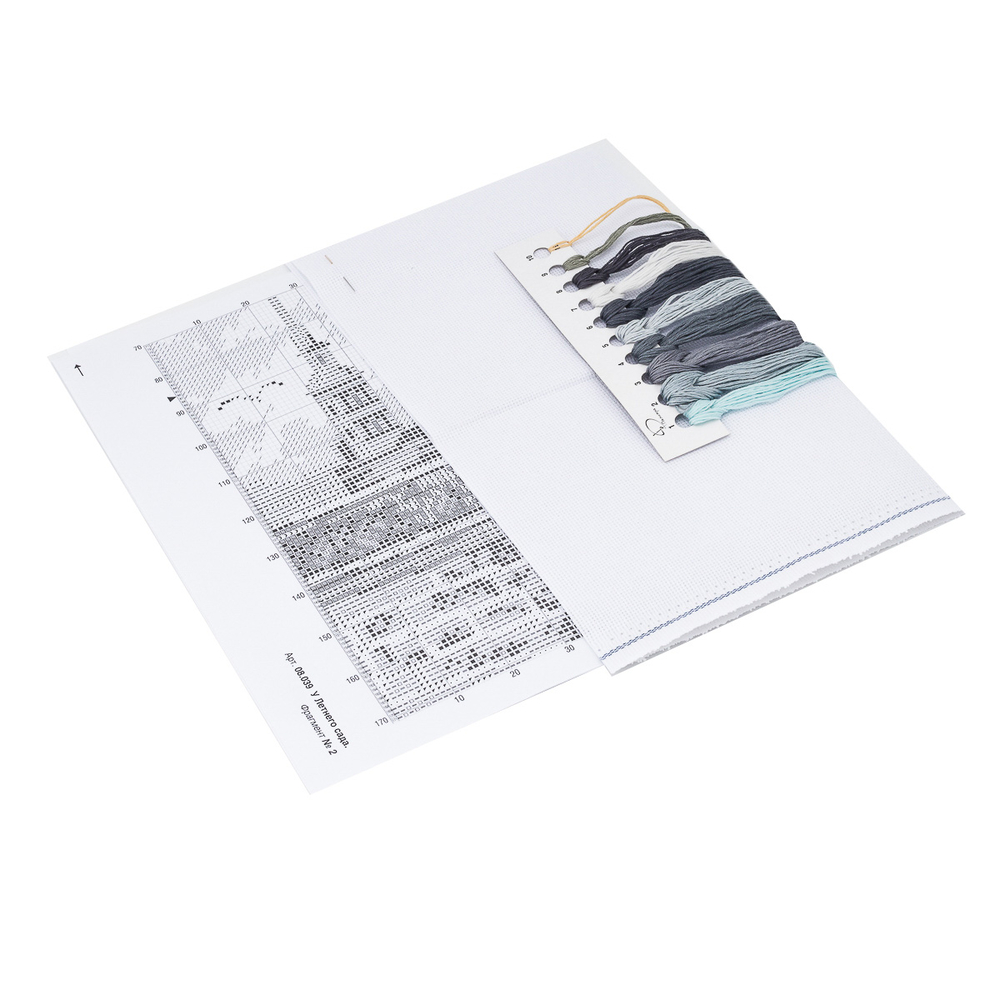 В наборе для вышивки используется канва Aida 16 каунта – этот материал позволяет вышивать небольшими стежками и прекрасно подходит для схем с подробной детализацией. Если вам не хватает опыта, сделайте разметку канвы, ориентируясь по схеме. Разметка поможет вам быстрее закончить вышивку и избежать возможных ошибок. Обеспечьте хорошее освещение рабочего места, чтобы снизить нагрузку на глаза. При необходимости используйте увеличительное стекло для комфортной работы с мелкими деталями. Кроме канвы, внутри вы найдете все необходимое для начала работы: нитки мулине ПНК им. Кирова, иглу для вышивания, символьную схему, инструкцию.