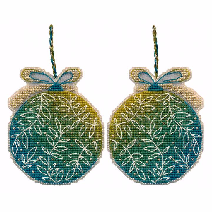 Зеленый шар, вышитый крестиком, станет символом тепла, уюта и новогоднего волшебства в вашем доме. Пластиковая канва прекрасно держит форму, поэтому пяльцы и рамки не нужны. Нужно вырезать детали по контуру и сшить их аккуратными стежками. При желании можно добавить между элементами ленту для подвешивания.