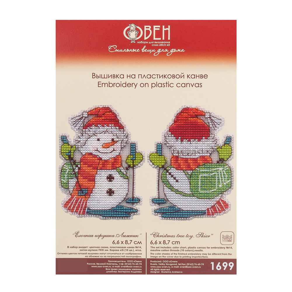 Вышивка крестиком набор для создания елочной игрушки "Лыжник" на пластиковой канве от бренда ОВЕН представляет собой уникальную возможность создать красивую и оригинальную вышивку с минимальными усилиями.