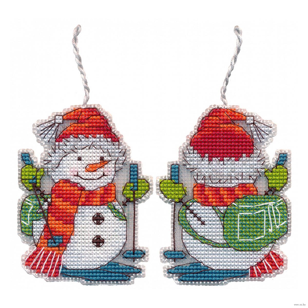 Снеговик, вышитый крестиком, станет символом тепла, уюта и новогоднего волшебства в вашем доме. Пластиковая канва прекрасно держит форму, поэтому пяльцы и рамки не нужны. Нужно вырезать детали по контуру и сшить их аккуратными стежками. При желании можно добавить между элементами ленту для подвешивания.