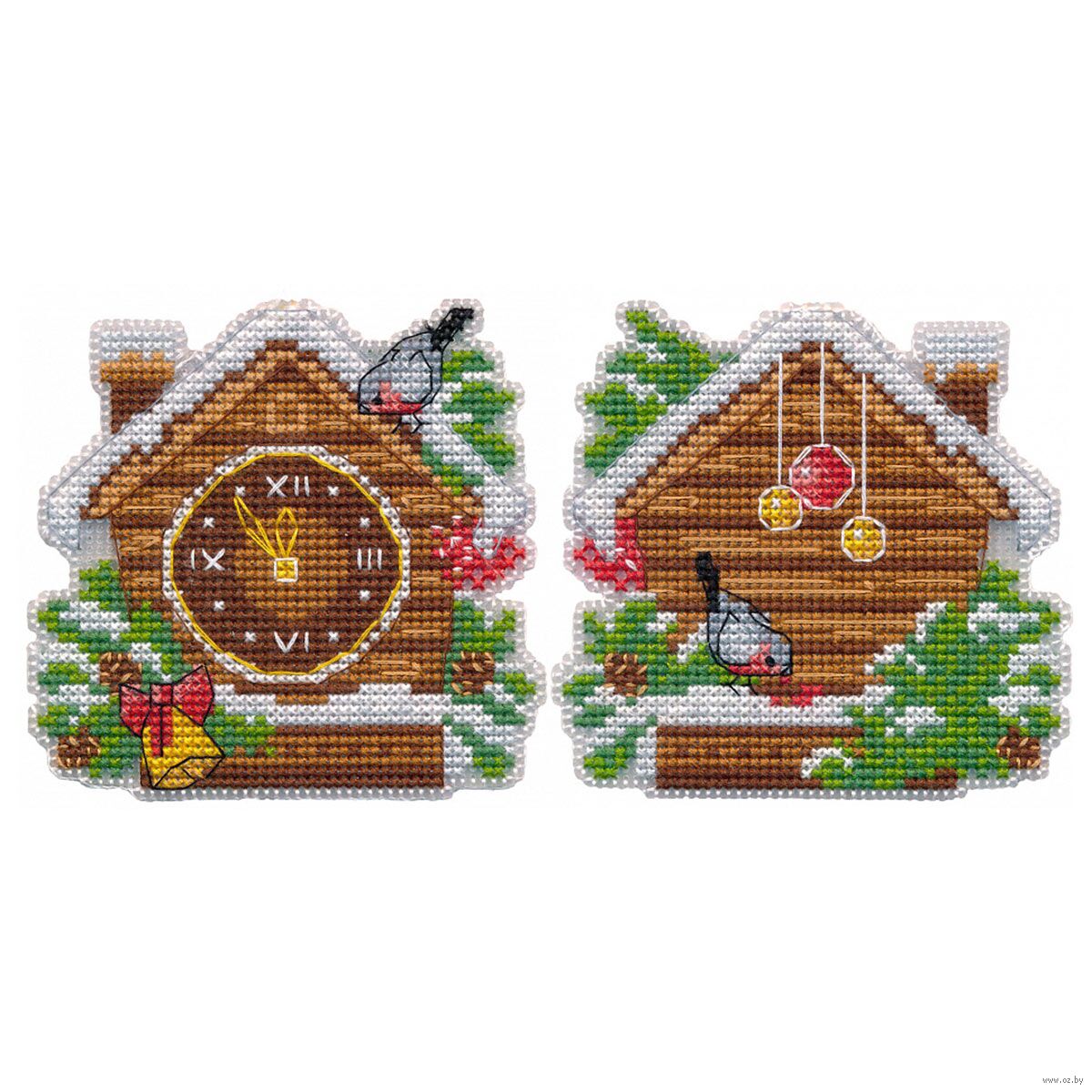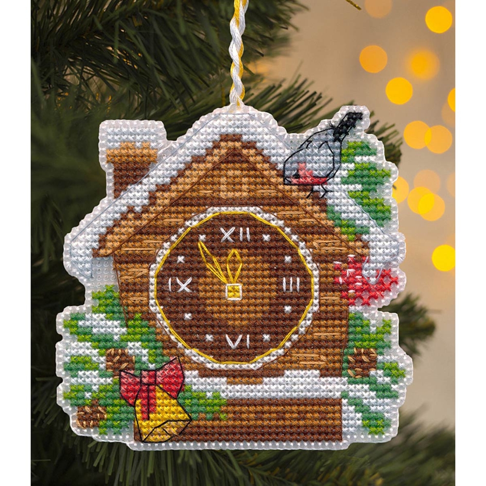 Вышивка крестиком набор для создания елочной игрушки "Новогодние часы" на пластиковой канве от бренда ОВЕН представляет собой уникальную возможность создать красивую и оригинальную вышивку с минимальными усилиями.