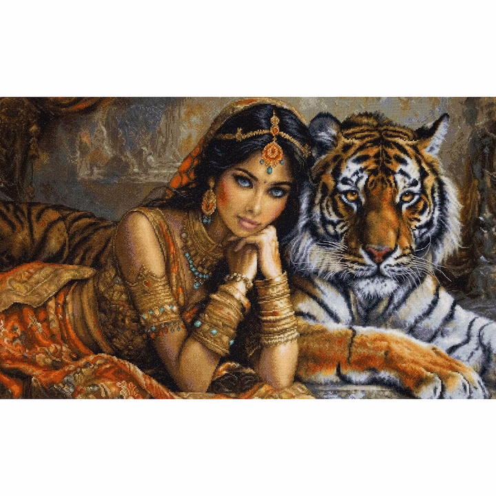 Вышивка крестиком набор "Индийская принцесса и тигр" от Luca-S – настоящее путешествие в мир волшебства и творческого самовыражения.