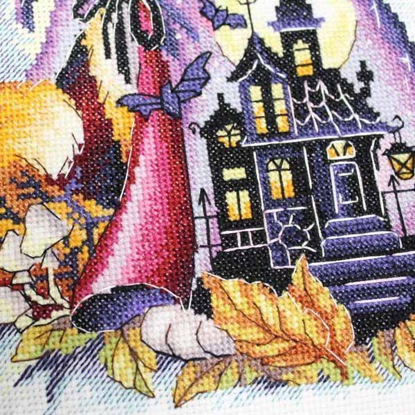 Для вышивания дизайнеры выбрали сетчатую канву 16 каунта – этот материал не просвечивает, отлично подходит для сюжетов с частичной зашивкой, при этом не затрудняет подсчет нитей и стежков.