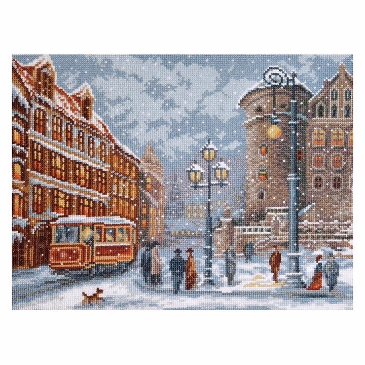 В наборе для вышивки крестом 'Огни старого замка' используется канва Aida 16 каунта – этот материал позволяет вышивать небольшими стежками и прекрасно подходит для схем с подробной детализацией.