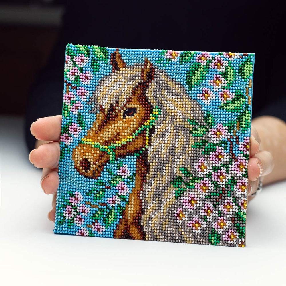 Набор для вышивания бисером ориентирован как на опытных мастериц, так и на начинающих рукодельниц. В нем используется традиционный способ бисерной вышивки – полная зашивка. Это означает, что весь рисунок будет покрыт сверкающим бисером, создавая эффект мозаики.
