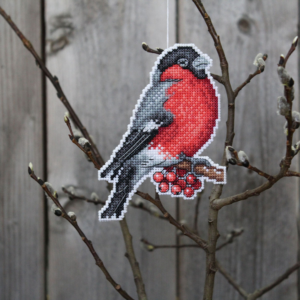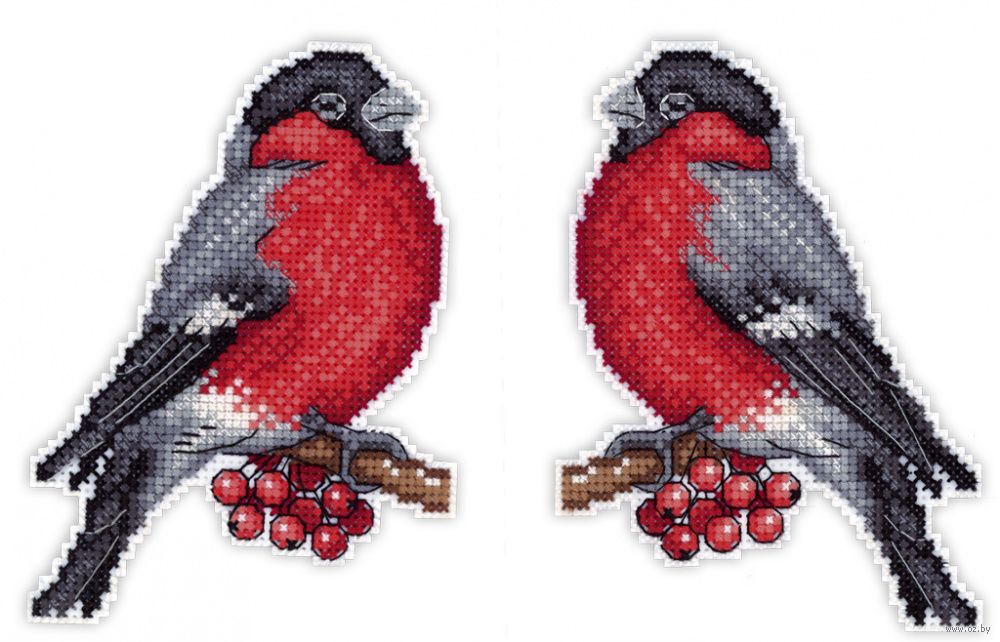 Обе стороны вышиваются согласно схеме, затем вырезаются по контуру, обозначенному в руководстве по вышиванию, и сшиваются изнаночными сторонами внутрь.