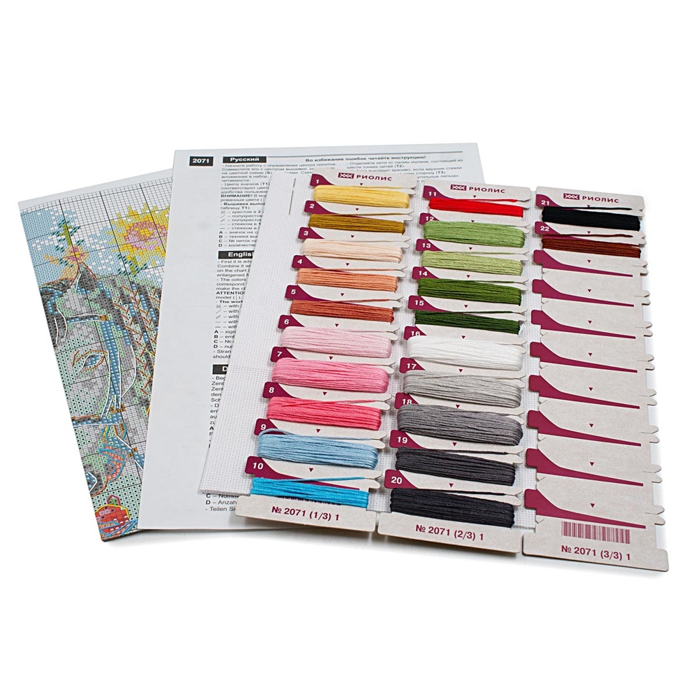 В этом наборе вышивка крестиком есть все необходимое для создания красивой картины: канва Aida 18ct, нитки для вышивания мулине, игла, цветная схема и инструкция.