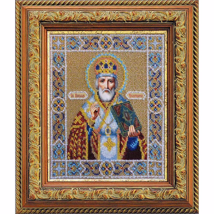 Бисер – традиционный материал для украшения икон. Его ценят за яркий блеск, многообразие цветовой палитры, долговечность. Икона святителя Николая Чудотворца, расшитая бисером, займет почетное место в вашем домашнем иконостасе или станет прекрасным подарком верующему человеку.
