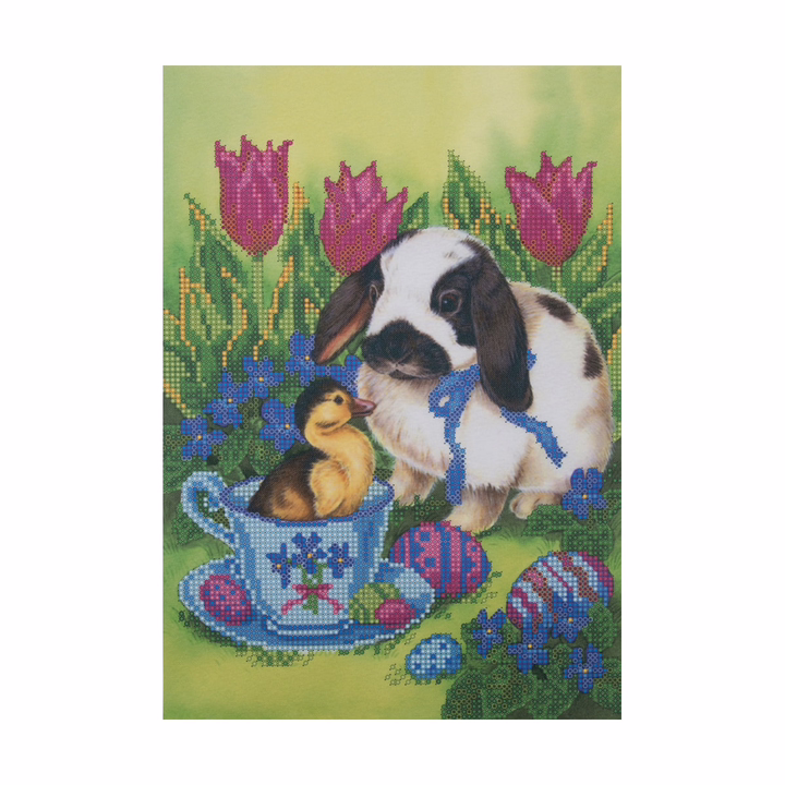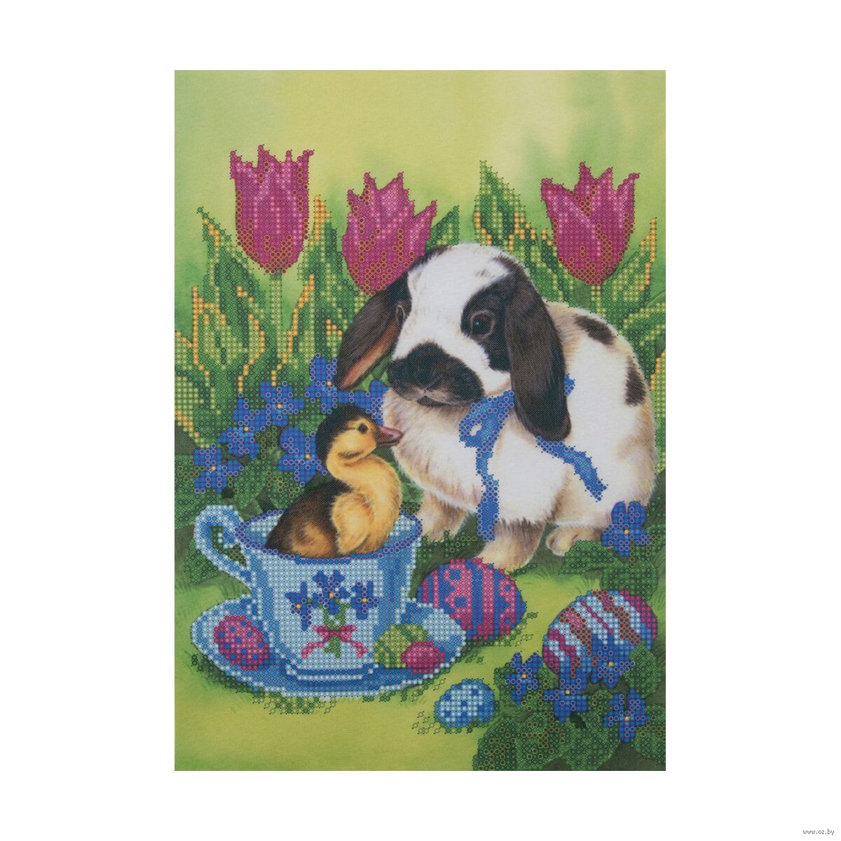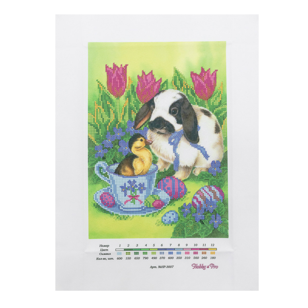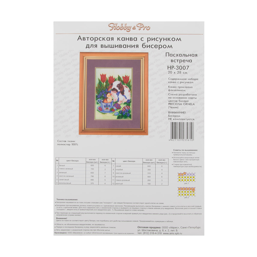 Ткань (габардин) с нанесенным рисунком-фоном, областями для вышивания и цветовой схемой для выбора бисера. Готовую картину можно оформить в багет.