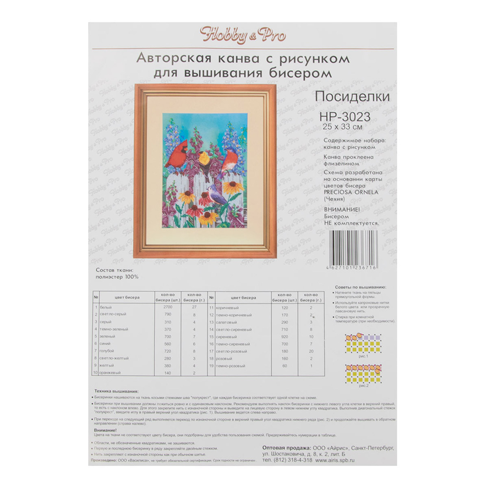 Бисер, нитки, иголка, рамка и паспарту приобретаются отдельно.