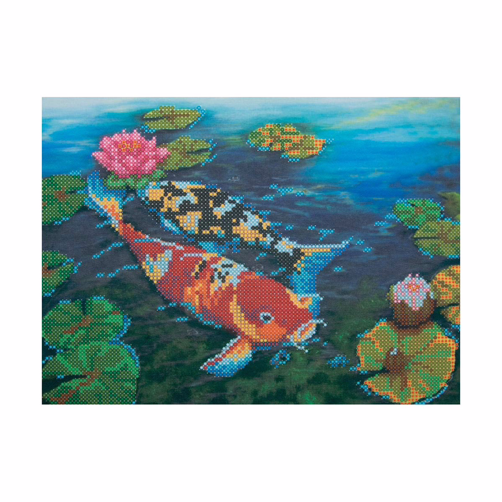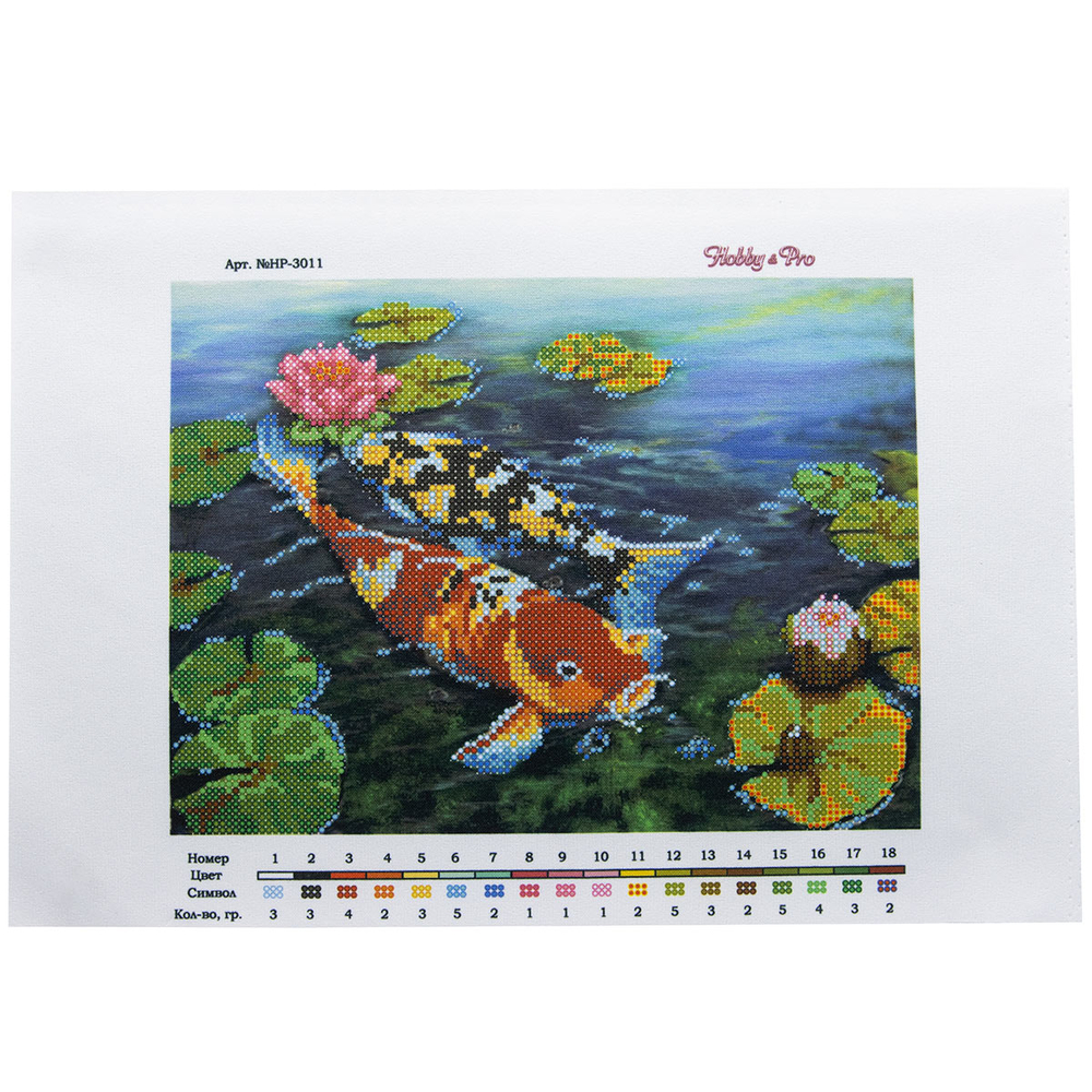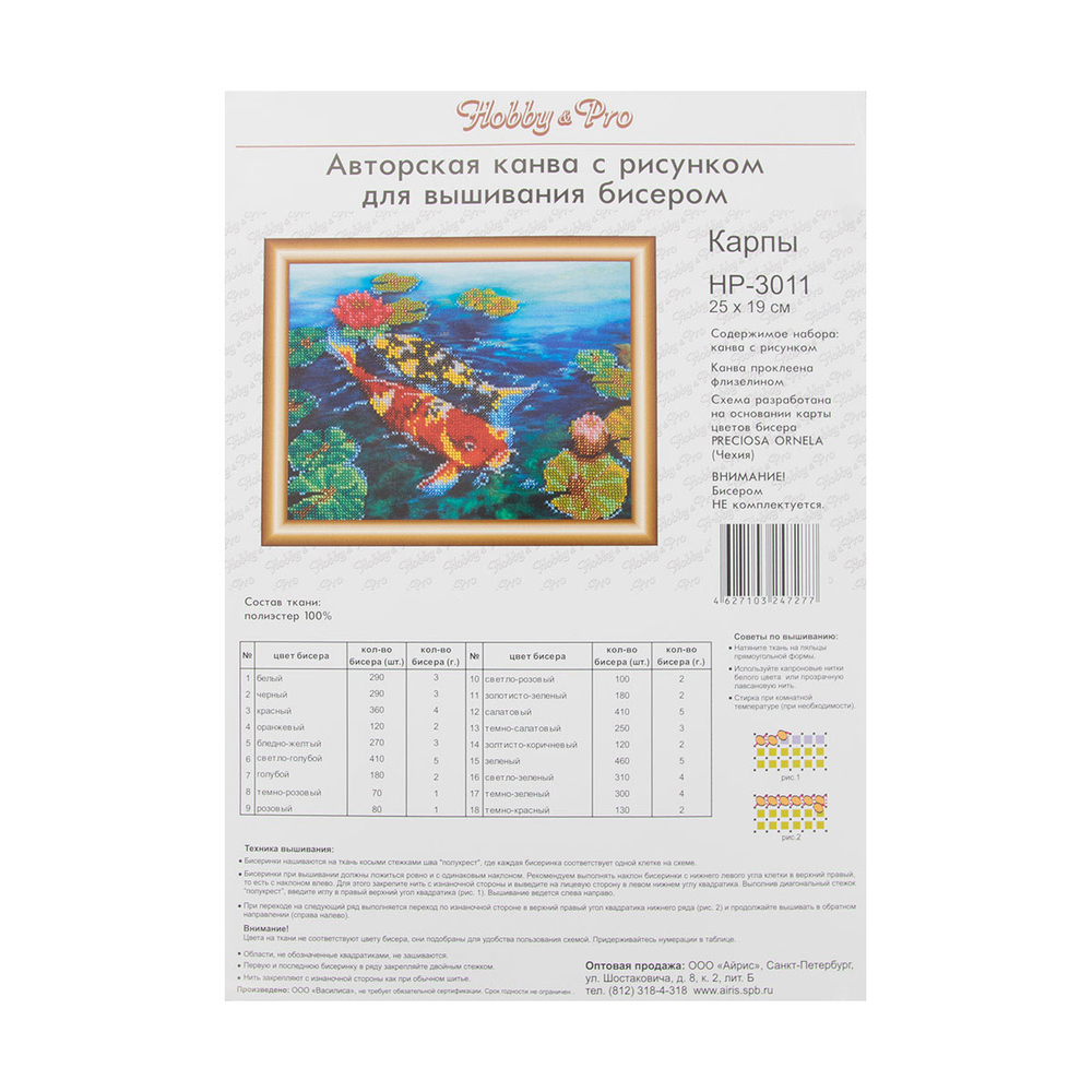 Ткань (габардин) с нанесенным рисунком-фоном, областями для вышивания и цветовой схемой для выбора бисера. Готовую картину можно оформить в багет.