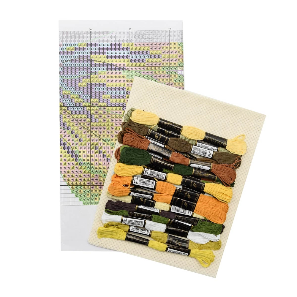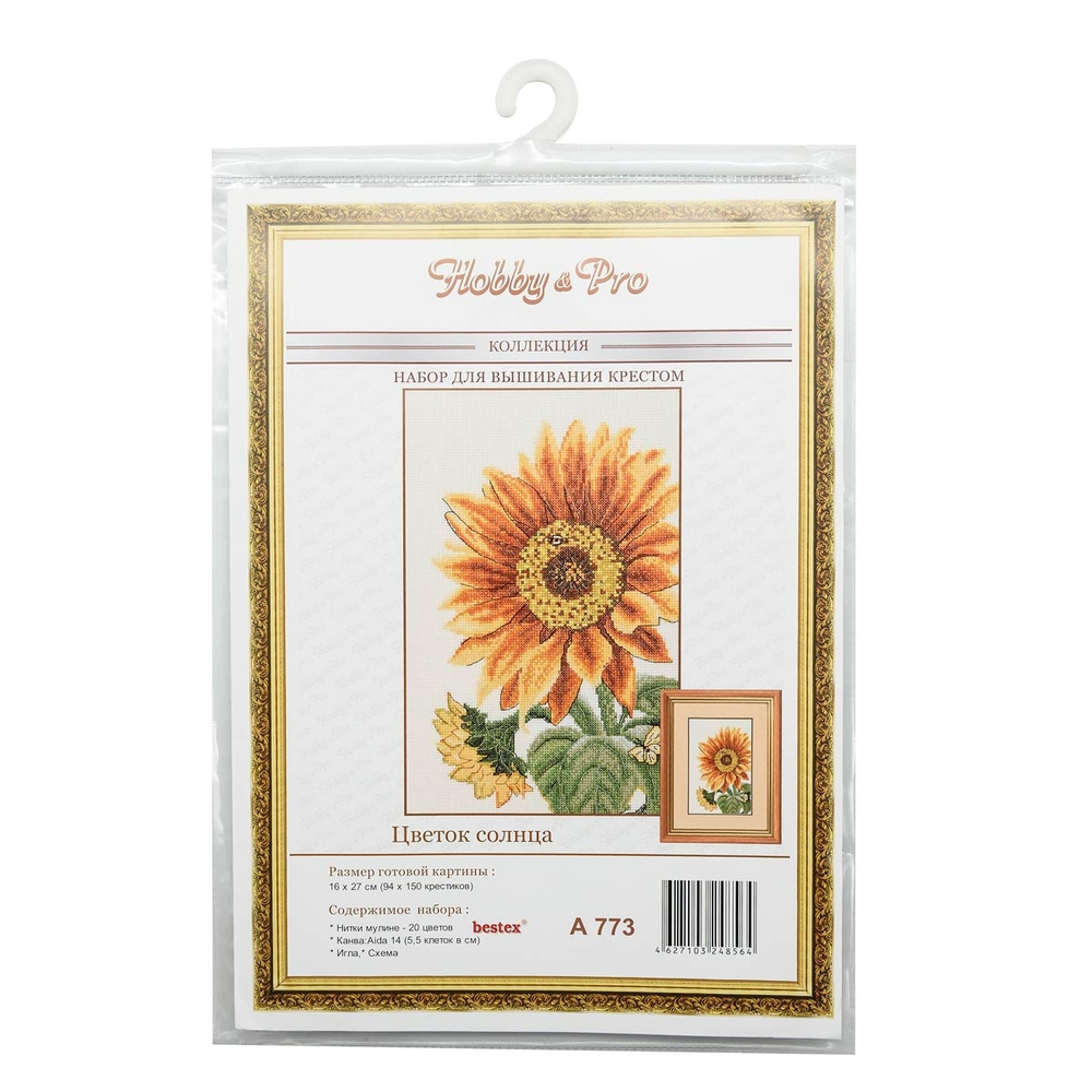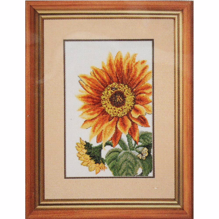 Сюжет "Цветок солнца" от Hobby&Pro вышивается счетным крестом. При кажущейся простоте эта техника позволяет создавать картины с тонко проработанными детали, плавной цветопередачей. Набор укомплектован сетчатой канвы Aida 14 каунта, которая подходит как для простых схем, так и для картин с подробной детализацией. При работе с такой канвой, скорее всего, не потребуется увеличительное стекло.