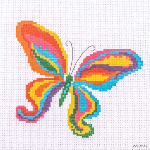 В набор входят разноцветные нитки мулине, пяльцы, канва Aida 14 с нанесённым рисунком, игла для вышивания.