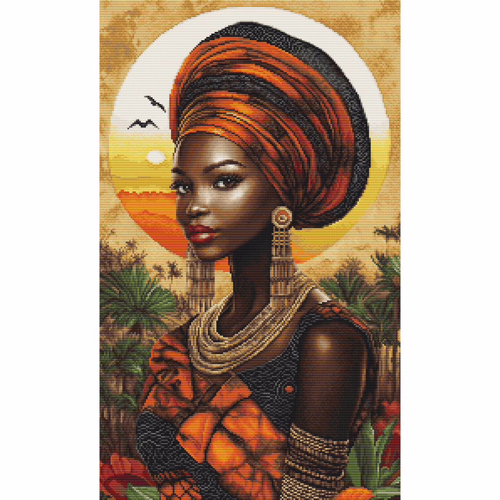 Готовая вышивка наполняет пространство светом, теплом и вдохновением, создавая атмосферу гармонии. Набор для вышивания Королева залитого солнцем континента – это прекрасный подарок для тех, кто ценит ручную работу, кто ищет умиротворения в творчестве и наслаждается красотой тонких деталей.