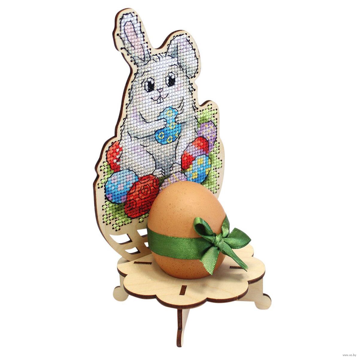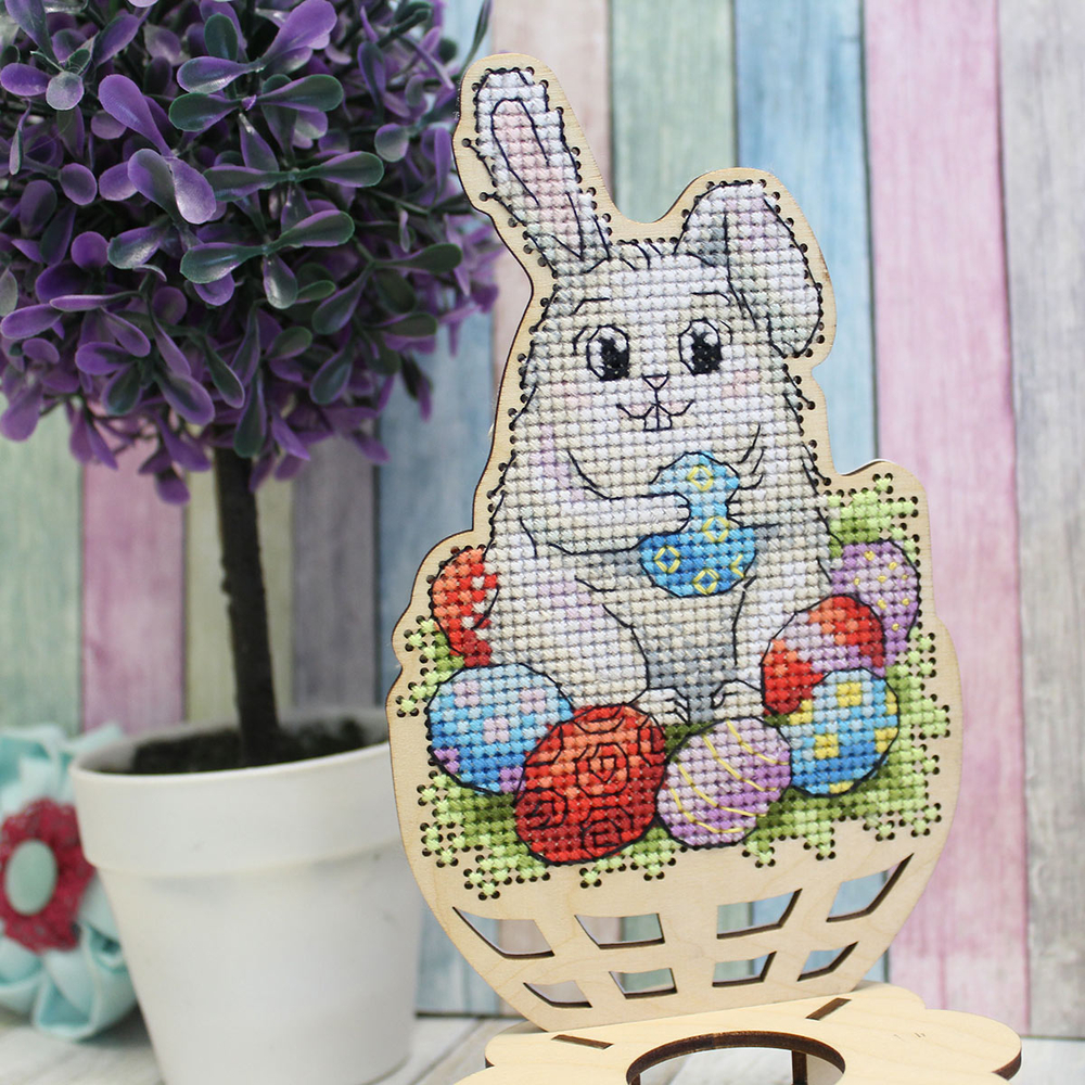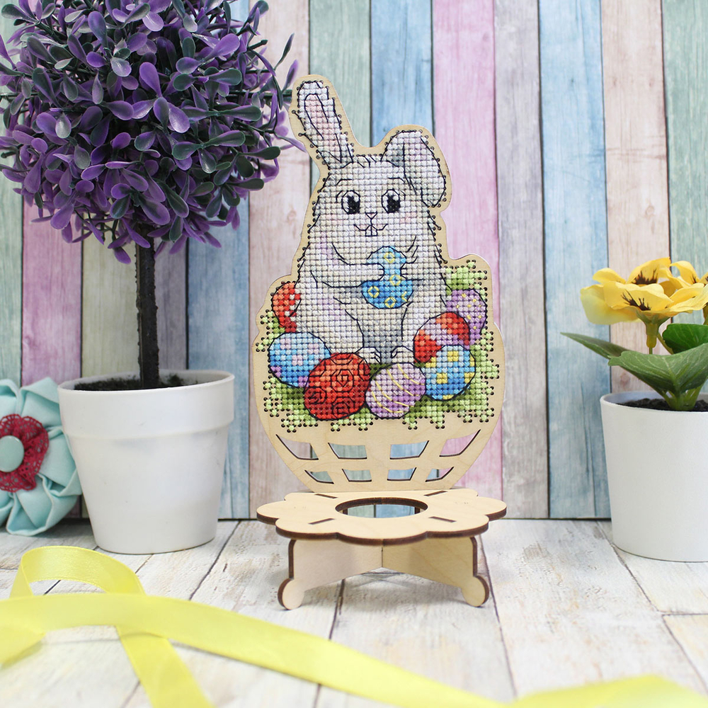 Создайте оригинальный сувенир с вышивкой – подставку под пасхальное яйко "Зайчик". Для вышивки не потребуются даже пяльцы, достаточно владеть техникой "косой стежок" и точно следовать инструкции.