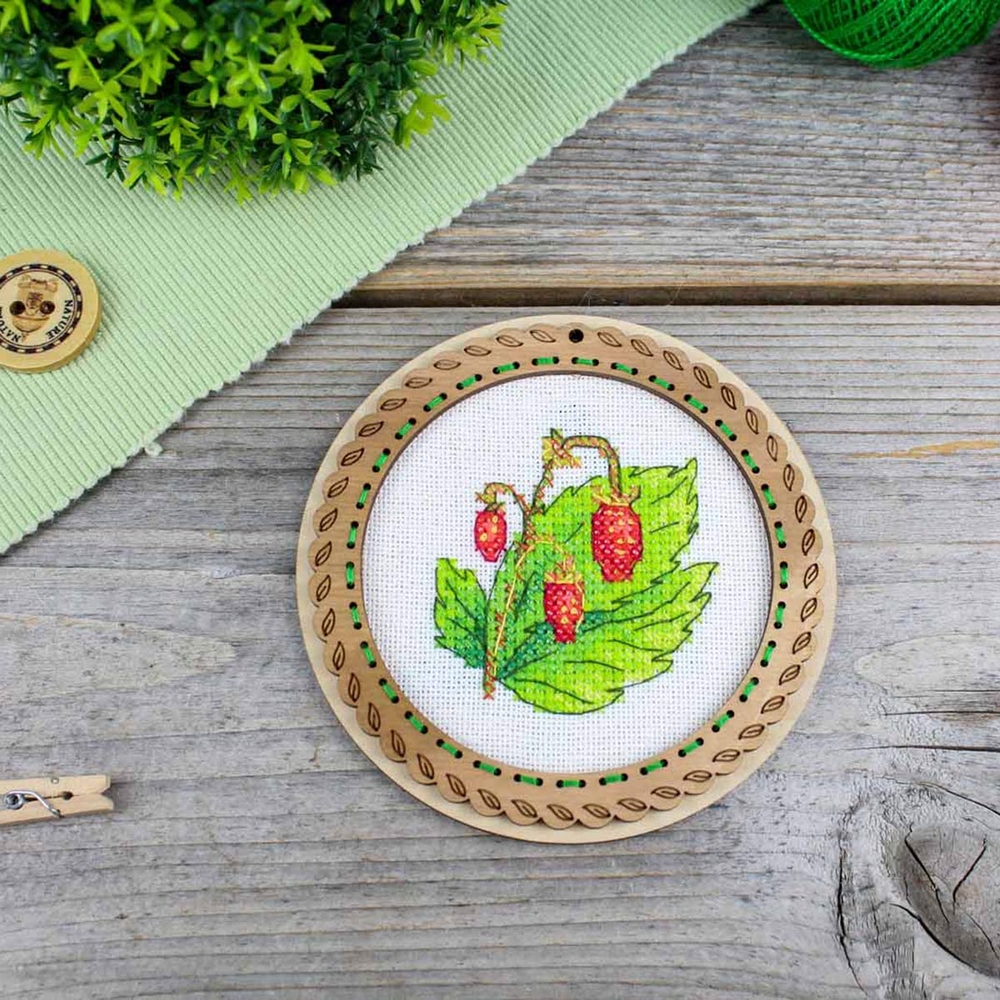 Вышивка крестиком набор на деревянной основе "Миниатюра. Дачные ягоды. Земляника" представляет собой уникальную возможность создать красивую и оригинальную вышивку с минимальными усилиями.