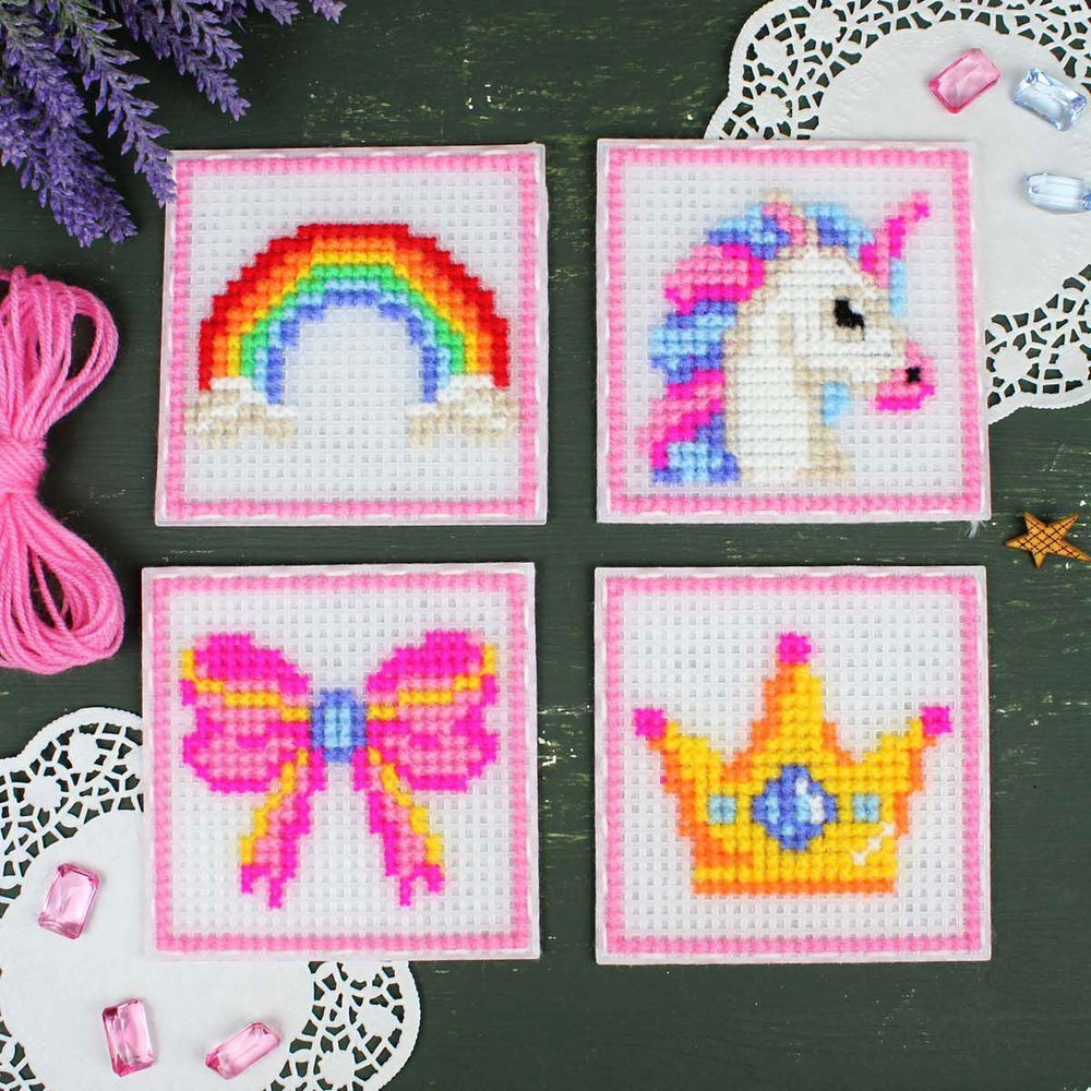 Вышивка крестиком набор на пластиковой канве "Набор принцессы" от МП Студии представляет собой уникальную возможность создать очаровательные магниты для холодильника своими руками. В комплект входят четыре забавных рисунка, работать над которыми понравится детям и новичкам.