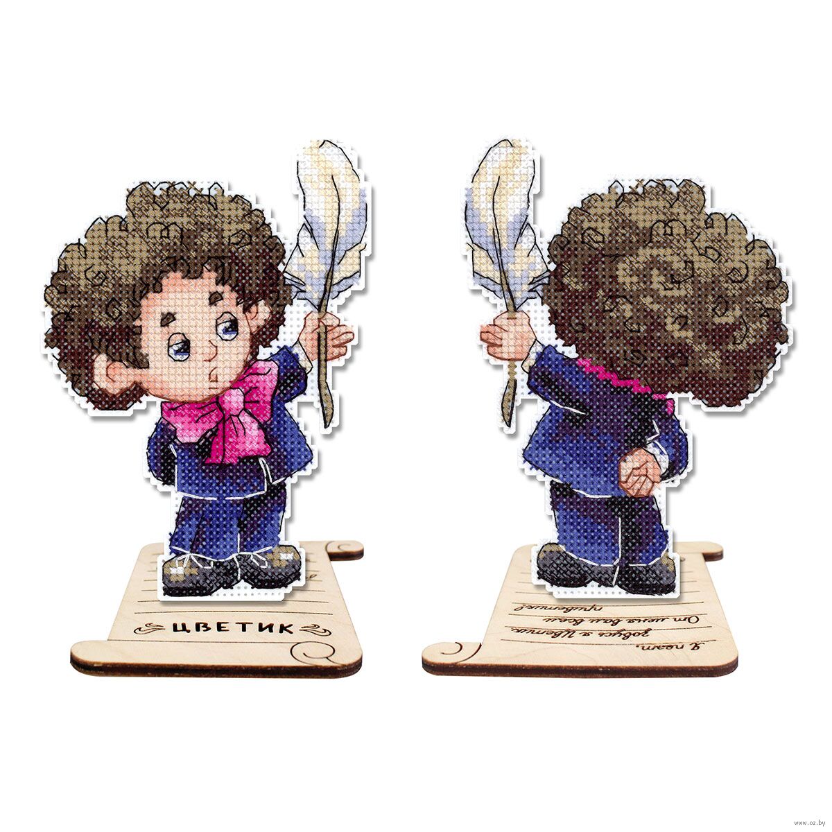 Пластиковая канва прекрасно держит форму, поэтому пяльцы и рамки не нужны. Нужно вырезать детали по контуру и сшить их аккуратными стежками. Вышитого героя сказки Николая Носова можно поставить на специальную деревянную подставку. Подставка обеспечивает устойчивость и надежность размещения на столе или другой поверхности.