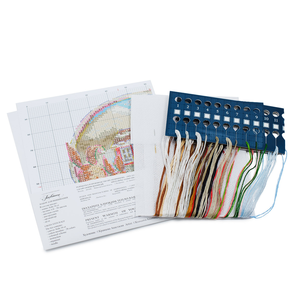 В работе используется канва Aida 16 каунта – этот материал позволяет вышивать небольшими стежками и прекрасно подходит для схем с подробной детализацией.