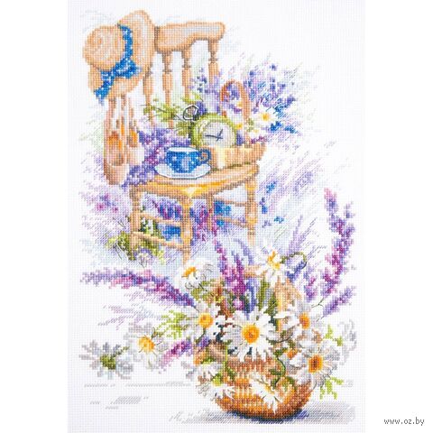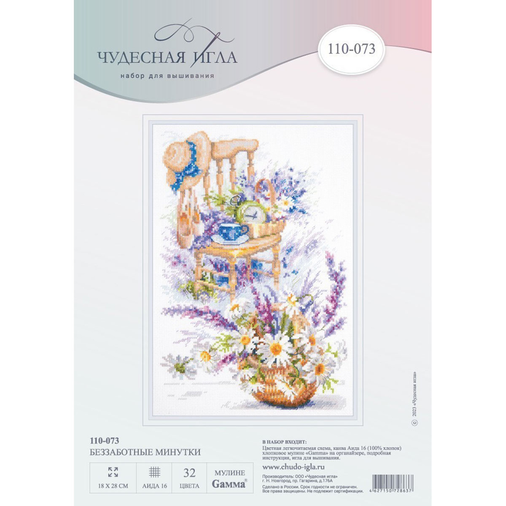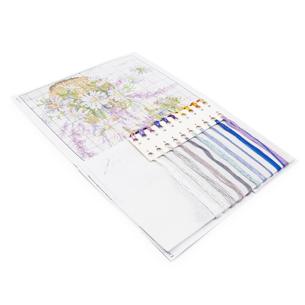 В наборе для вышивки крестом "Беззаботные минутки" используется канва Aida 16 каунта – этот материал позволяет вышивать небольшими стежками и прекрасно подходит для схем с подробной детализацией.