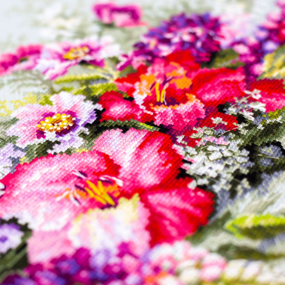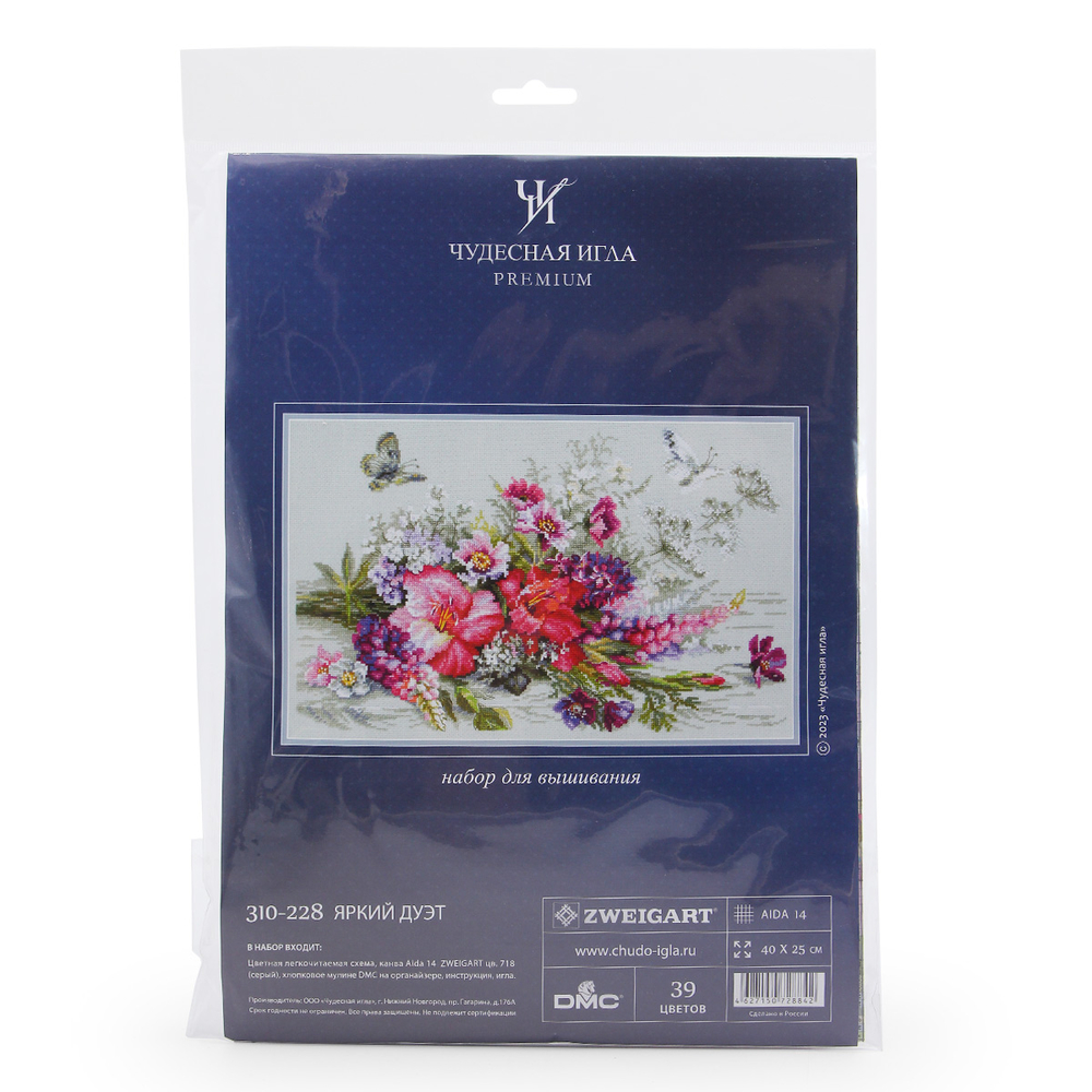 Набор для вышивки крестом 'Яркий дуэт' укомплектован канвой Aida 14 каунта. Она прекрасно подходит для схем с подробной детализацией, но при этом позволяет выкладывать достаточно крупные стежки.